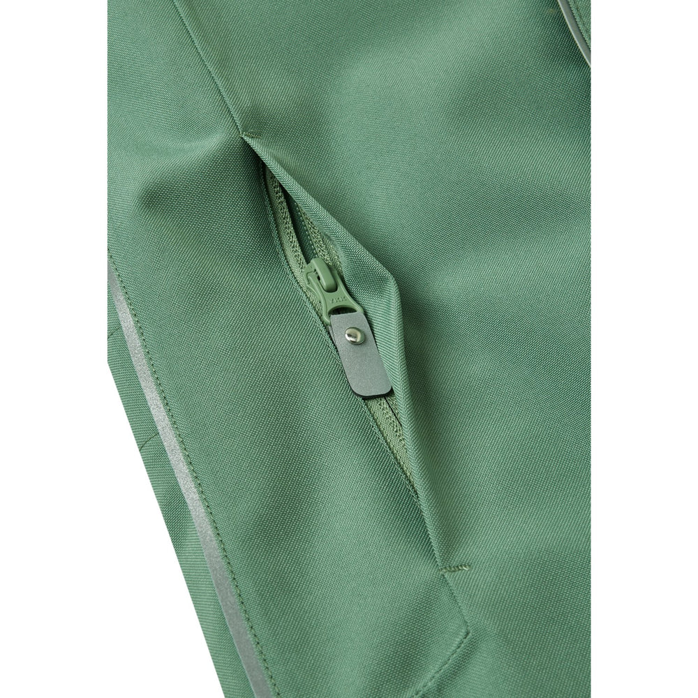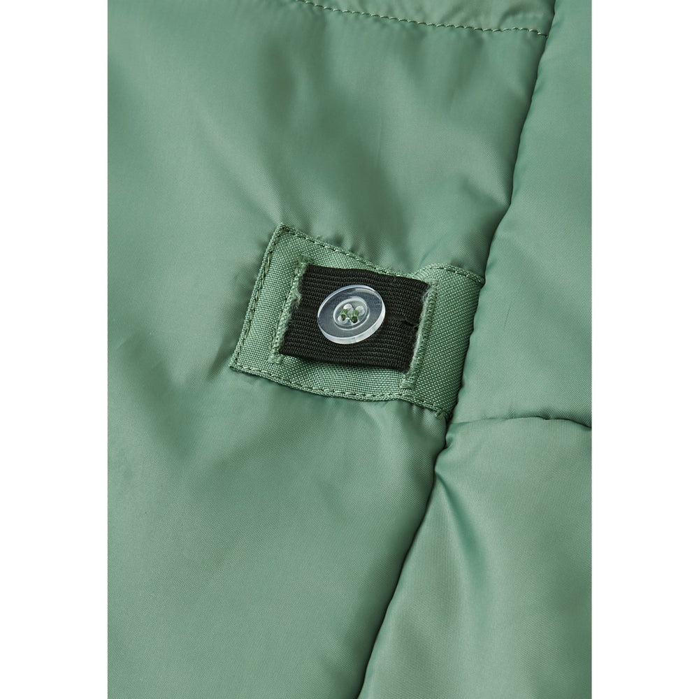 The sleek design boasts a versatile green clay color with subtle patterning, matched with a smooth lining and robust reinforcements at critical points for prolonged wear. With adjustable waist, cuffs, and leg endings, it offers a customizable fit that grows with your child. Safety is paramount, which is why the hood is both detachable and adjustable, equipped with snaps for quick release if necessary.