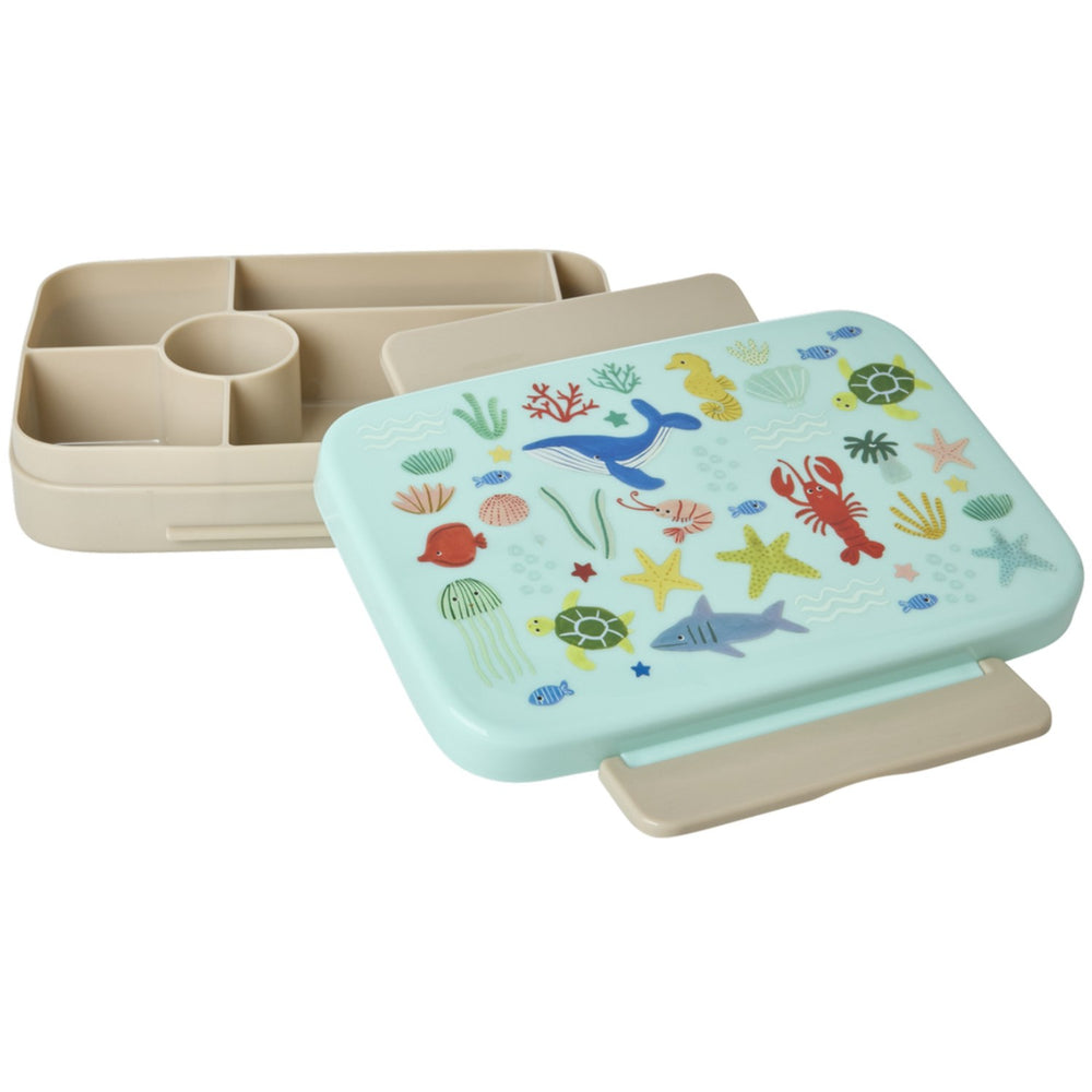 Rice Blue Ocean Print Plastic Lunchbox With 6 Rooms
