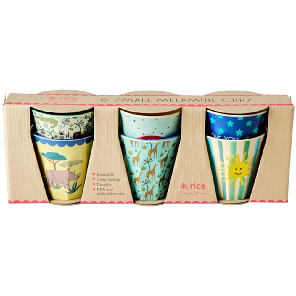 RICE Funky Prints Lille Melamin Børnekop 6-pak