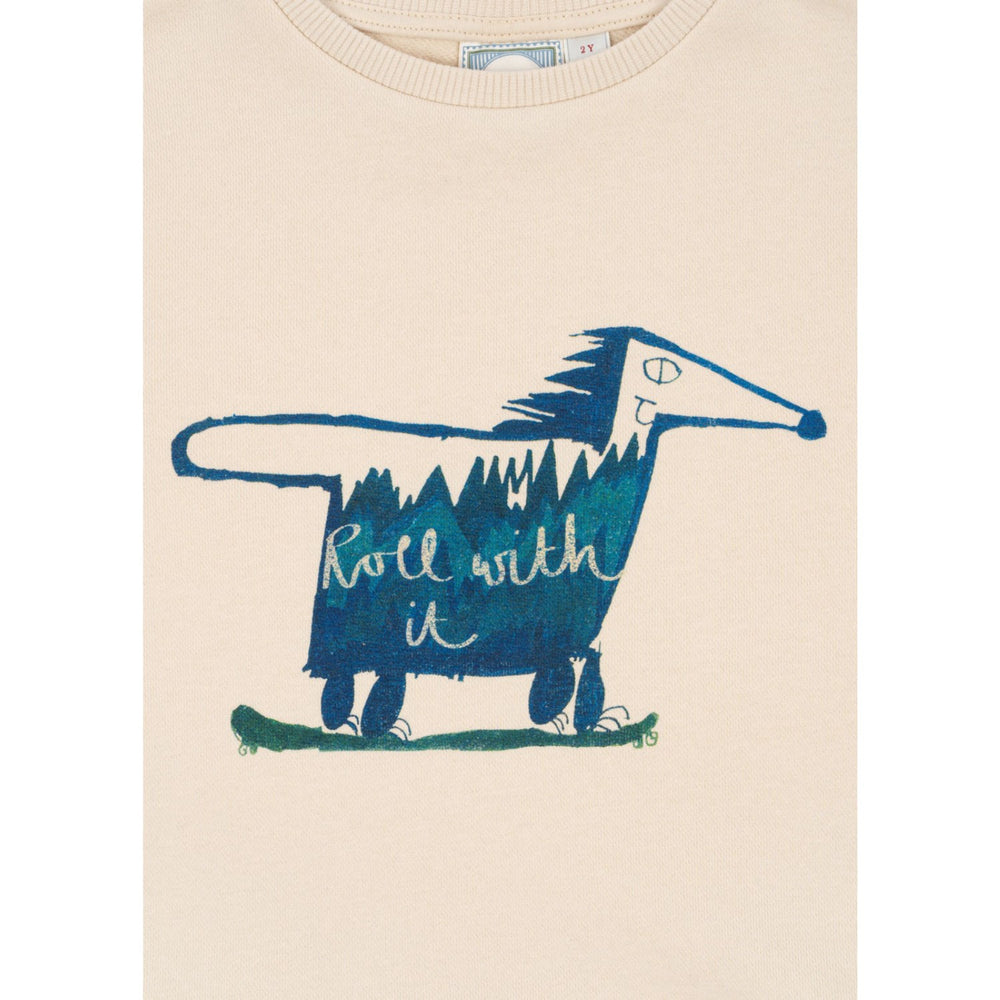 Brighten up your child's wardrobe with the Konges Sløjd Summer Sand RHW X KS Roller Sweat Ocs. Crafted from 100% organic cotton, this adorable sweatshirt offers supreme comfort with its relaxed, slightly boxy fit and dropped shoulders. The front features a charming sausage dog illustration by Rosie's son, Jack, adding a splash of playfulness. Perfect for cosy days, the sweatshirt is both sustainable and stylish, making it an ideal choice for eco-conscious families. Suitable for everyday play and easy to care for, it combines durability with whimsical design.