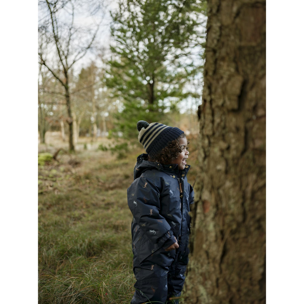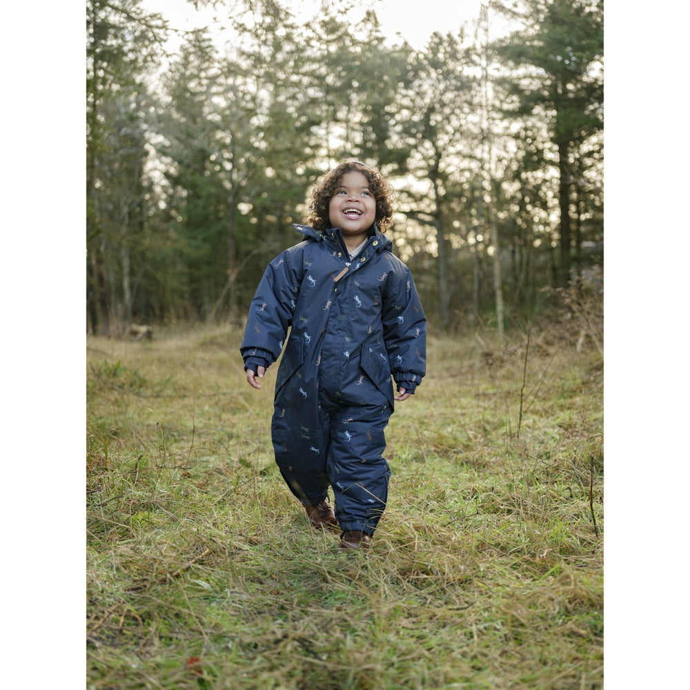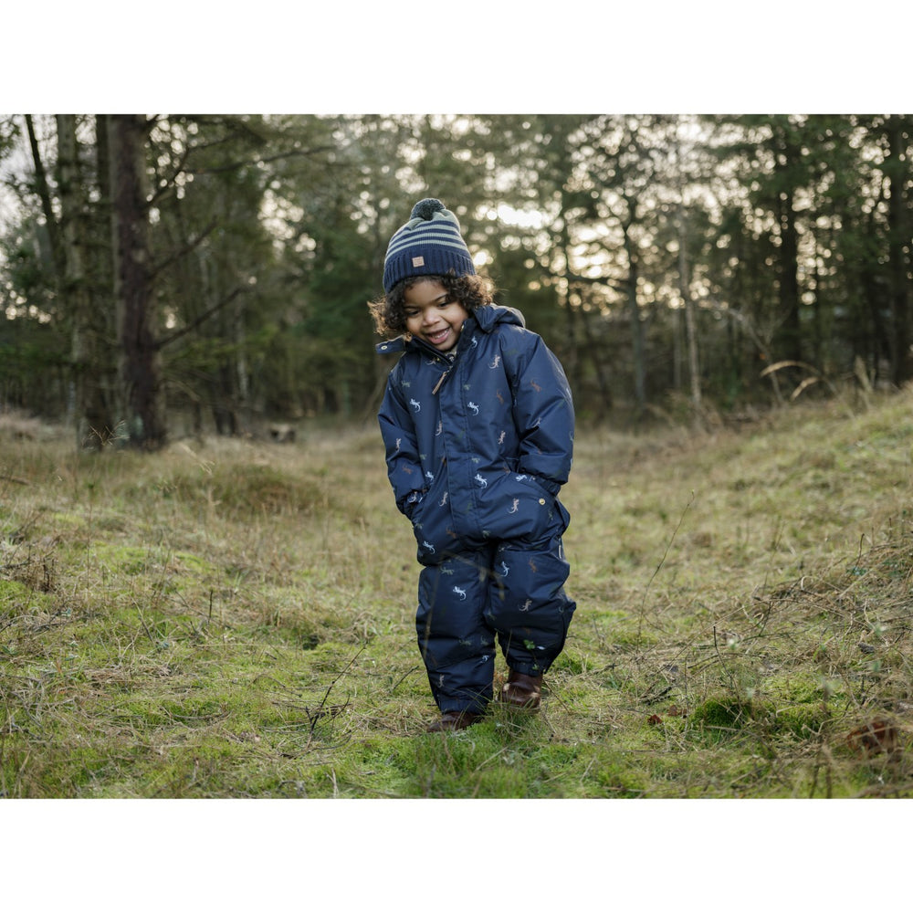 Brighten up your child's winter adventures with the Hust & Claire "More Navy Orlando Lizards" snowsuit. Crafted from durable materials, this charming snowsuit features a playful lizard pattern set against a deep navy background. Its snug fit ensures your little one stays warm, while the thoughtful design allows for freedom of movement. Easy to care for and designed to withstand the rigors of playful days, this snowsuit is an ideal choice for fun, chilly outings, ensuring your child remains cozy and stylish.