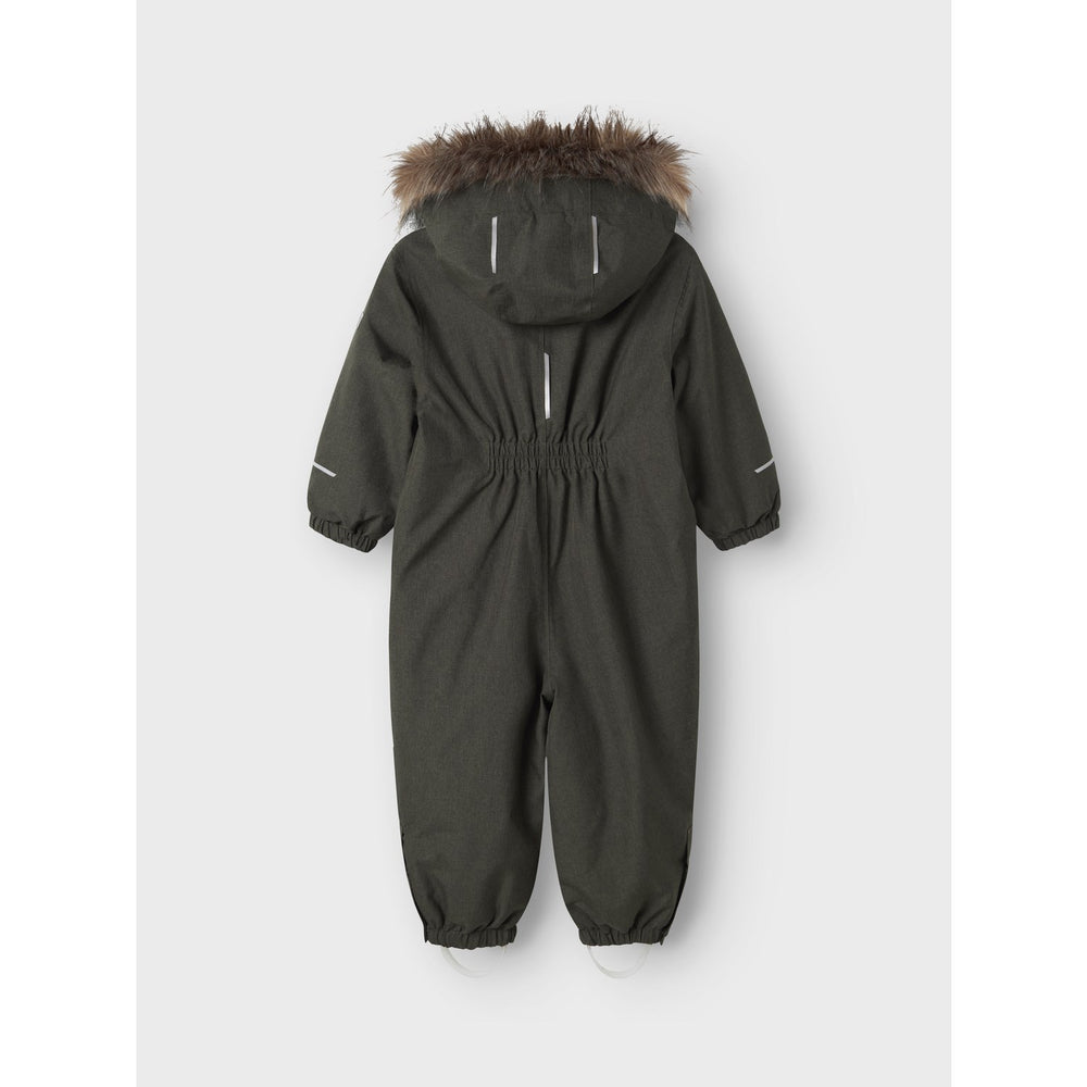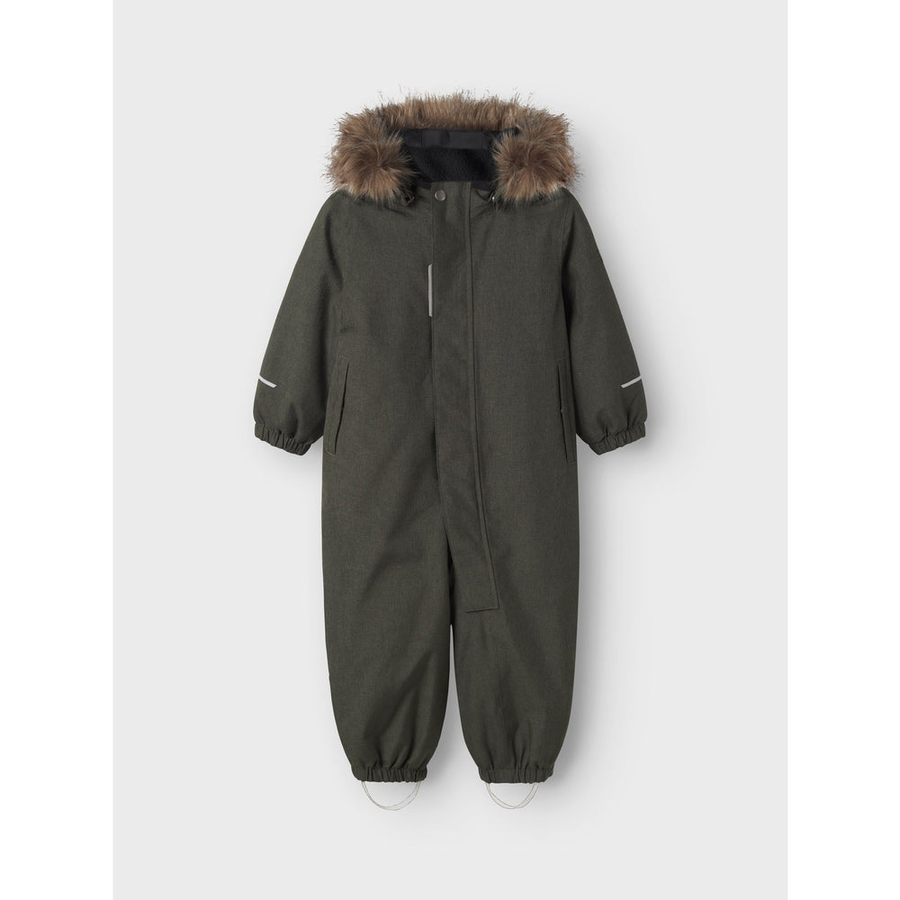 Perfect for endless winter play, the NAME IT snowsuit transforms chilly days into comfortable, stylish, and safe outdoor adventures for your child. Breathability: 4,000g/m2/24h Closure: Zip fastening Detachable hood: Yes Filling: High insulation Lining: Fleece lining in body for warmth and a soft feel Materials: 100% Polyester Materials and care: Wash with similar colors. Max. shrinkage 5% Washing instructions: Maximum Washing Temperature 40°C - Normal Process Water column pressure (mm): 10,000mm Waterproof: Yes Wear resistance: 50,000 Martindale Windbreak: Yes Extra: The main material in this product contains a minimum of 50% recycled polyester. Recycled polyester saves natural resources and reduces the amount of waste