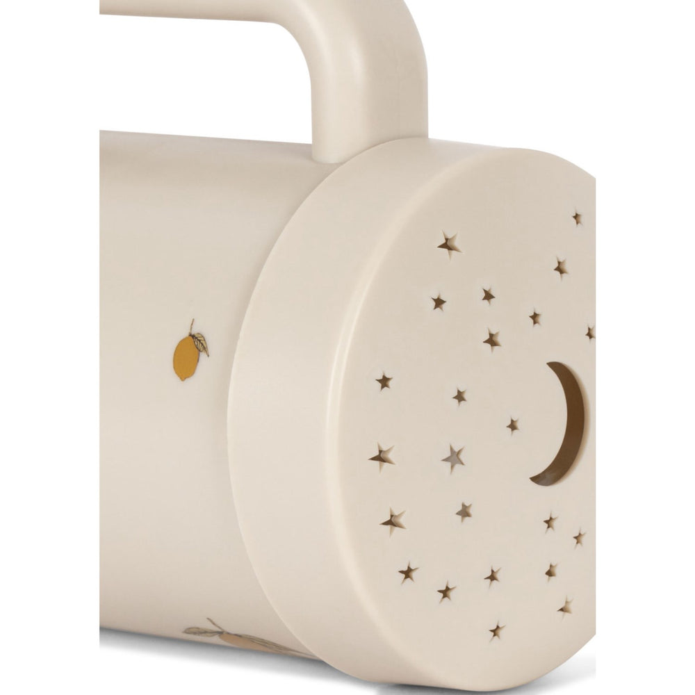 Explore a world of wonder with the Konges Sløjd Lemon Flash Light Big, perfect for children aged 3 and up. This magical flashlight not only illuminates but transforms any room with its color-changing lights and cut-out shapes that project captivating tales onto the wall. Built from sturdy ABS and a PC lens, it ensures durability and safety. Simple to use and ideal for educational play, it opens doors to storytelling and creativity. Lightweight and easy to maintain, it promises endless entertainment, safely lighting up your little one's imagination. Note: Not available for sale in the US and contains small parts posing a choking hazard for children under 36 months.