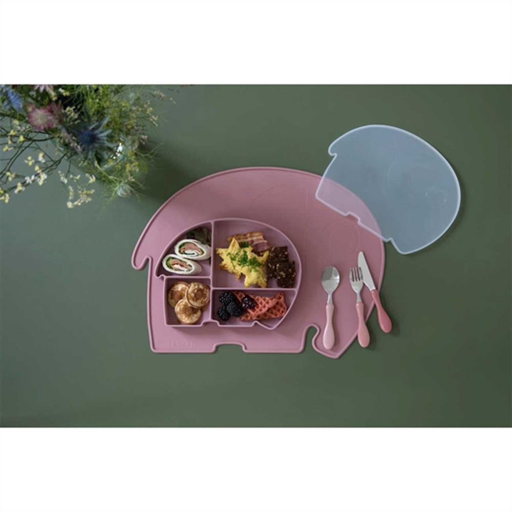 Sebra Silicone Plate W/Lid Fanto The Elephant Vintage Rose