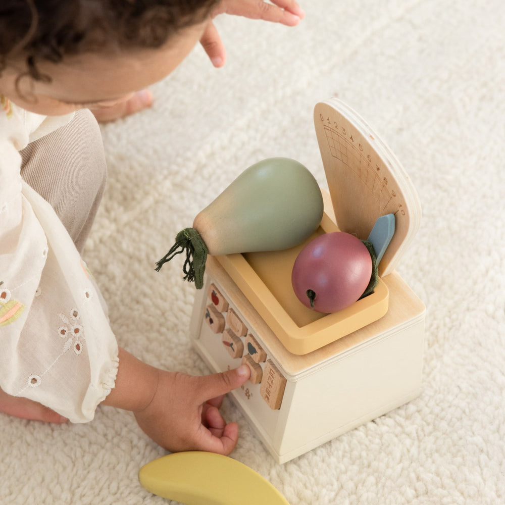 - Extra: Let your child play shopkeeper with this charming, certified-wood store scale. It's perfect for imaginative play with fruit and vegetables and endless creativity.