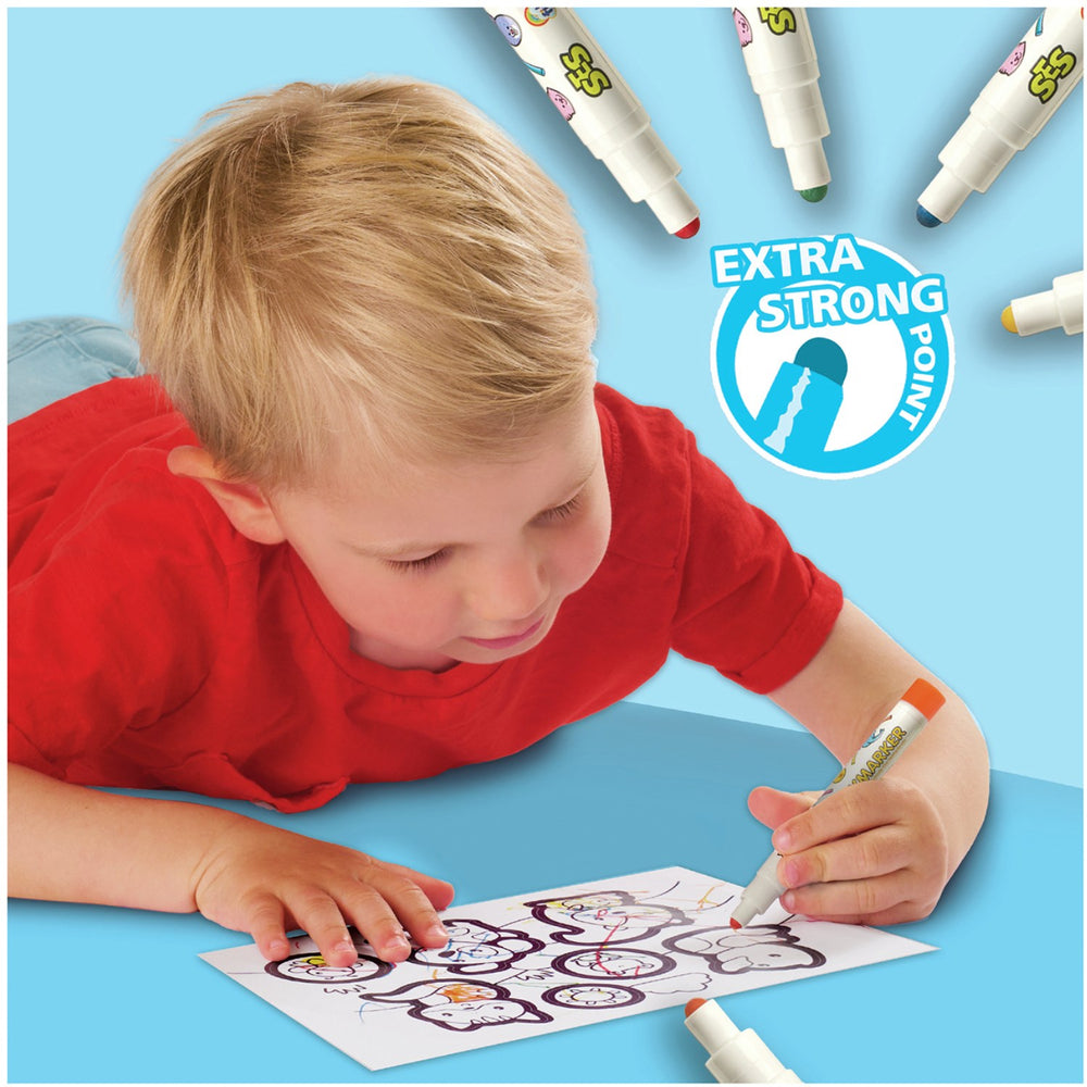 - Contents: 26 x stickers, 5 x children's markers (yellow, orange, red, green, blue)