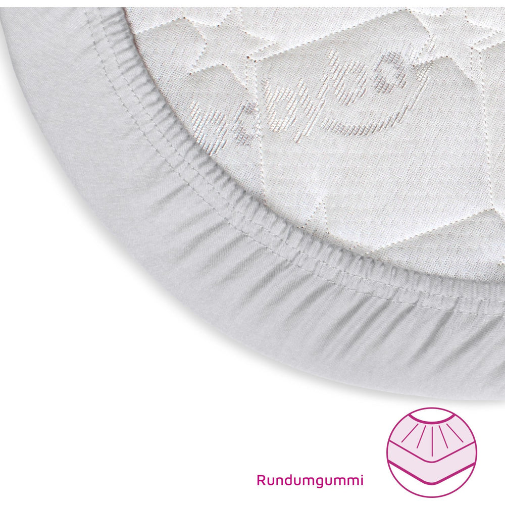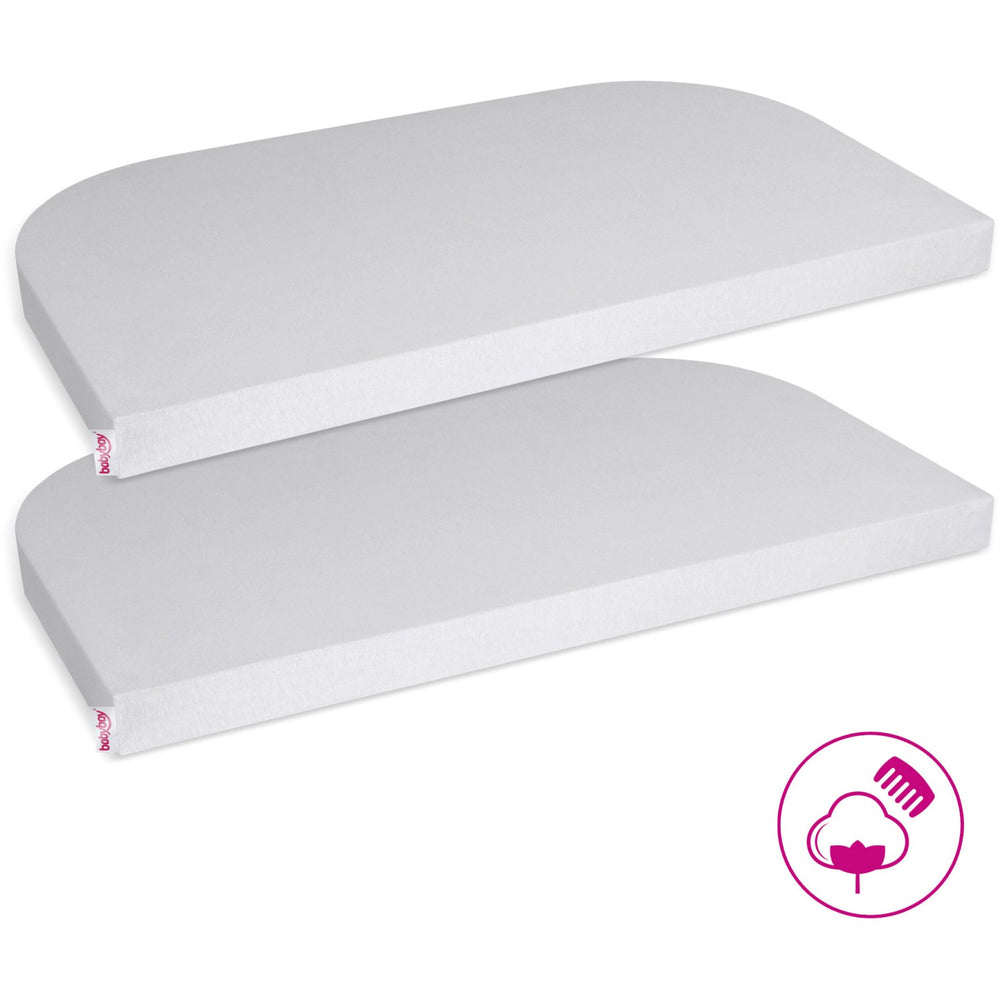 Discover the comfort and safety of the babybay® Soft Grey Jersey Cover Deluxe Sheet, perfectly designed to fit your babybay® mattress. Crafted from 100% durable, combed cotton, these sheets guarantee a soft and breathable environment for your baby. Each sheet in this convenient two-pack features an all-around elastic band for a secure fit that prevents slips and ensures a smooth, wrinkle-free surface. Easy to change and maintain, the covers are machine washable and can be tumble dried. Certified by "Confidence in Textiles" to Ökotex Standard 100 Class 1 for babies, these sheets meet stringent safety and quality standards, ensuring peace of mind and comfort for your little one.