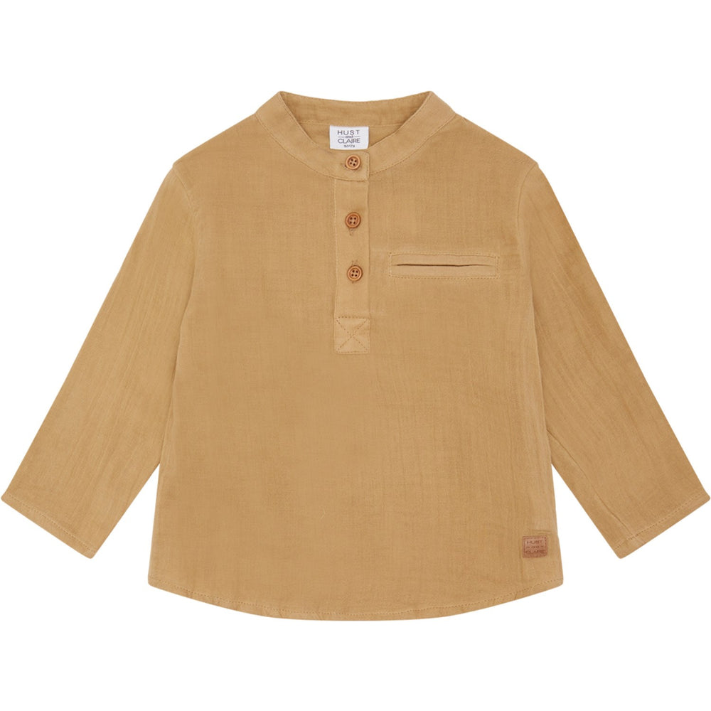 Introducing the charming Hust & Claire Warm Sand Rasser Shirt, a perfect blend of style and comfort for your child's wardrobe. Crafted from 100% organic cotton, this shirt is both soft and gentle on delicate skin, ensuring all-day comfort. Featuring a stylish mandarin collar and a neat faux welt pocket on the left chest, it brings a touch of sophistication to any young one's outfit.