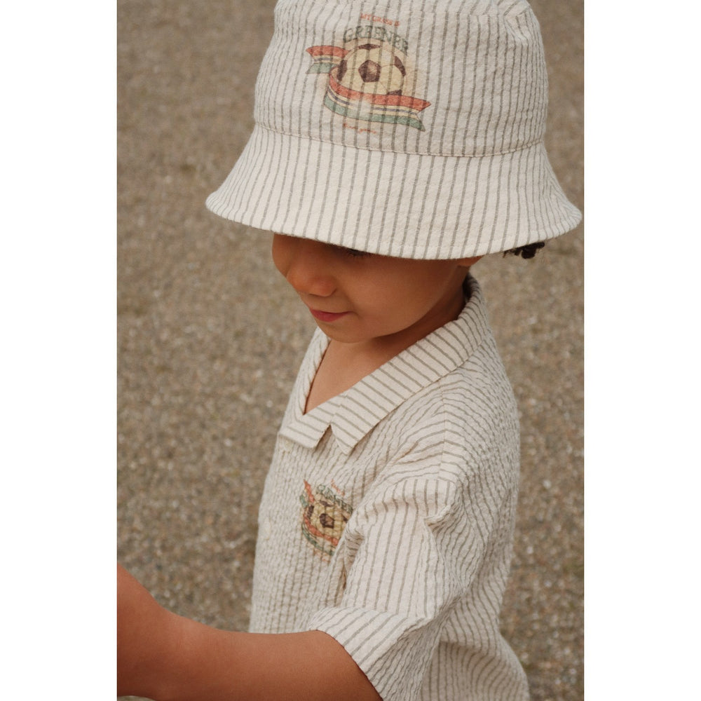 Delight your little one with the Konges Sløjd Stripe Bluie Elliot SS Shirt, crafted from 98% organic cotton and 2% elastane for ultimate softness and stretch. This short-sleeved seersucker shirt boasts charming stripes and utmost comfort. Certified organic by GOTS, its durability meets style, promising easy care and a delightful fit for every child's adventure.