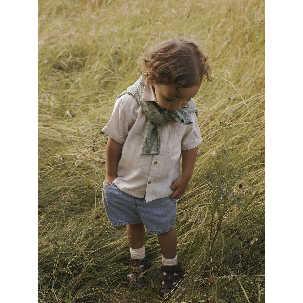 Dress your little one in the Lil'Atelier Bleached Sand Nmmtarou Ss Loose Shirt, showcasing a refined, classic appearance with its woven fabric featuring a criss-cross pattern and lightly textured surface. This shirt comes complete with a button-down collar and short sleeves, made for easy dressing with its button fastening. A chest pocket adds a functional touch, perfect for tucking away small treasures. The loose fit ensures comfort throughout the day, making it an ideal choice for playful moments or relaxed gatherings. Care for this shirt is fuss-free, promising to maintain its stylish look with regular wear. This trendy and comfortable shirt allows your child to explore in style without compromising on comfort.
