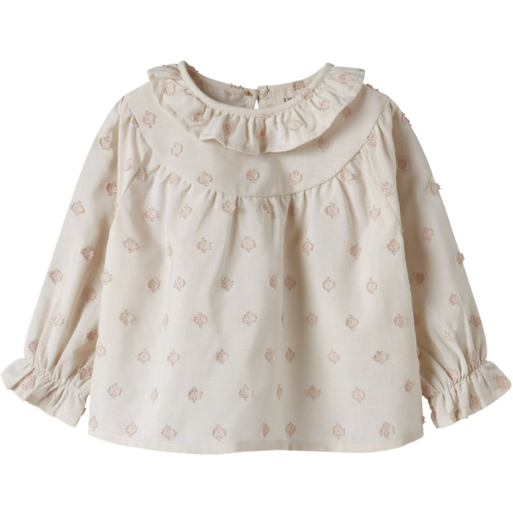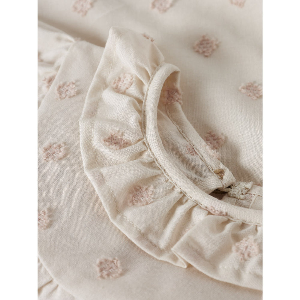 Dress your little one in timeless style with our Lil'Atelier Pastel Parchment Nbfnethe Ls Loose Shirt. Crafted from woven fabric with a neat criss-cross design, this shirt provides both comfort and a classic look. Featuring a buttoned under-collar, long sleeves with elasticated cuffs, and dainty frill details, it combines functionality with charm. The loose fit ensures easy movement, perfect for playtime or any casual occasion. Plus, it's easy to care for — just remember to keep it away from fire! This shirt is an ideal blend of trendiness and practicality, making it a must-have in your child's wardrobe.