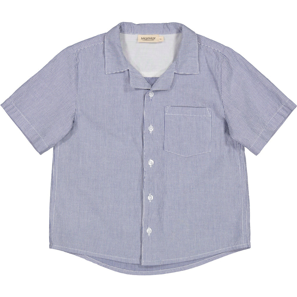 Discover the charm of the MarMar Fine Cotton Navy Stripe Tage Shirt, perfect for your little one! Crafted from soft, breathable cotton, this short-sleeved shirt features a classic navy stripe design. Its hassle-free button closure and handy front pocket enhance both style and function. Ideal for various occasions, it offers a comfortable fit that kids love wearing. Easy to care for, it's a stylish and practical choice for any child's wardrobe.