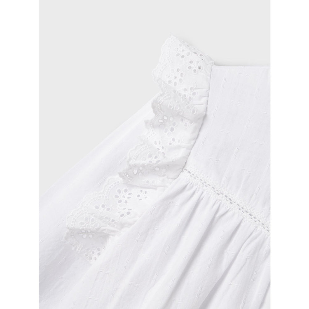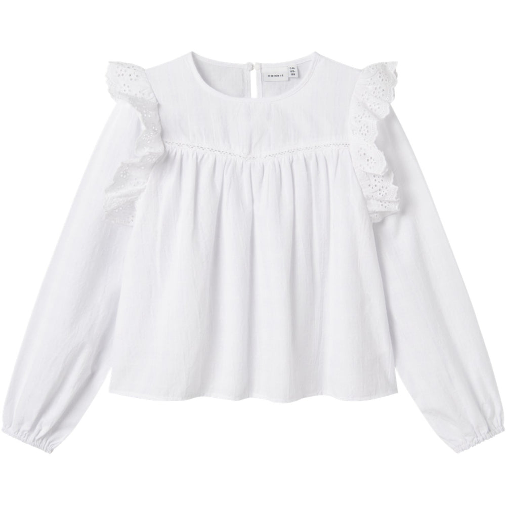 Delight in the charm of the Name It Bright White Kanya Shirt, perfect for both special events and daily adventures. Crafted from woven fabric with a classic criss-cross texture, this shirt features a stylish shirt collar and long sleeves with elasticated cuffs for a snug fit. Its button and loop fastening ensures easy dressing, while delicate frills, embroidery, and lace details enhance its elegant appeal. The regular fit and short length provide both comfort and freedom of movement, making it an ideal choice for active children. From playground fun to family gatherings, this shirt keeps your child looking smart and feeling comfortable.