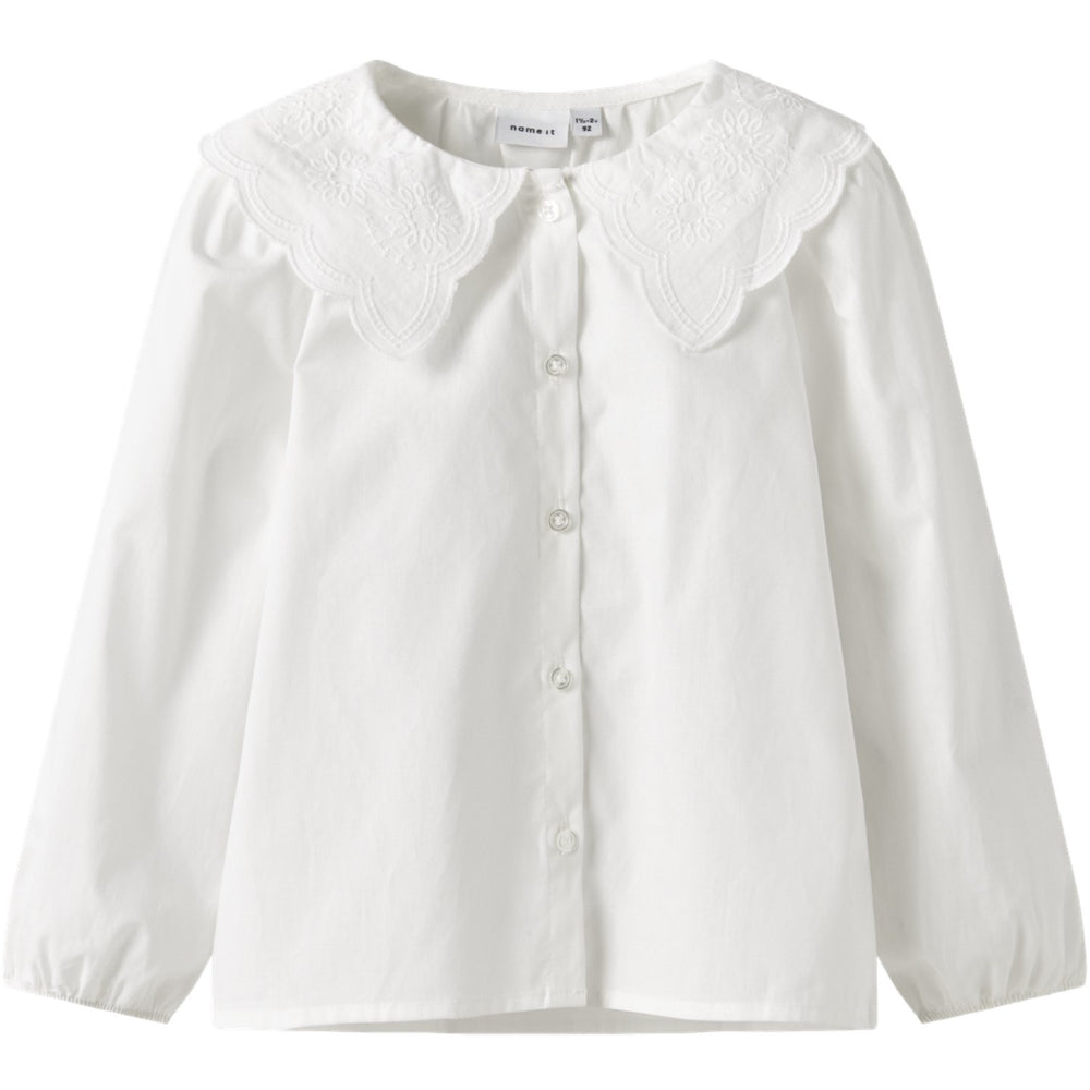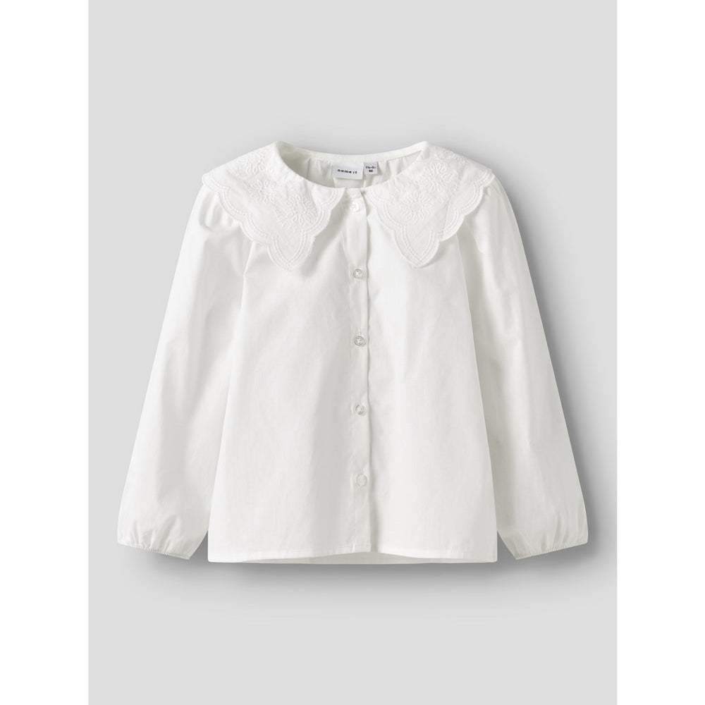 Dress your little one in the Name It Bright White Nmfrollaring LS Shirt, perfect for both special events and daily adventures. Crafted from lightweight poplin, this shirt features a smooth, crisp finish ensuring your child looks sharp while staying comfortable. With a classic shirt collar, long sleeves with elasticated cuffs, and delicate lace details, it combines elegance with ease. The regular fit and button fastening promote freedom of movement, making it an ideal choice for active kids. Easy to care for, this shirt ensures both style and practicality for your child's wardrobe.