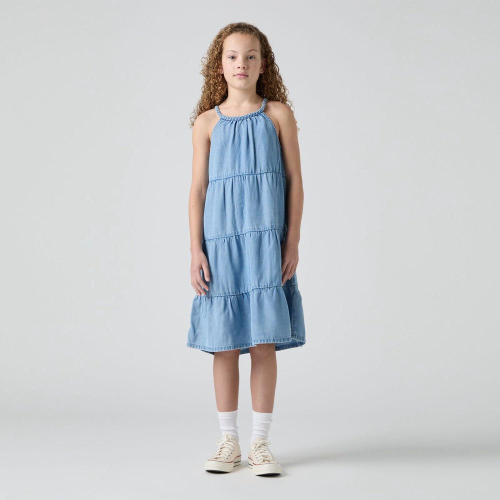 Dress your little one in the charming Levi's Hang Up Without Destruction Lvg Halter Tiered Dress, designed for both style and comfort. Crafted in soft, durable fabric, this halter neck dress features a delightful tiered design, adding a playful twist. The non-destructive fabric ensures long-lasting wear, making it not only trendy but practical. Perfect for any occasion, it offers a comfortable fit for all-day play.