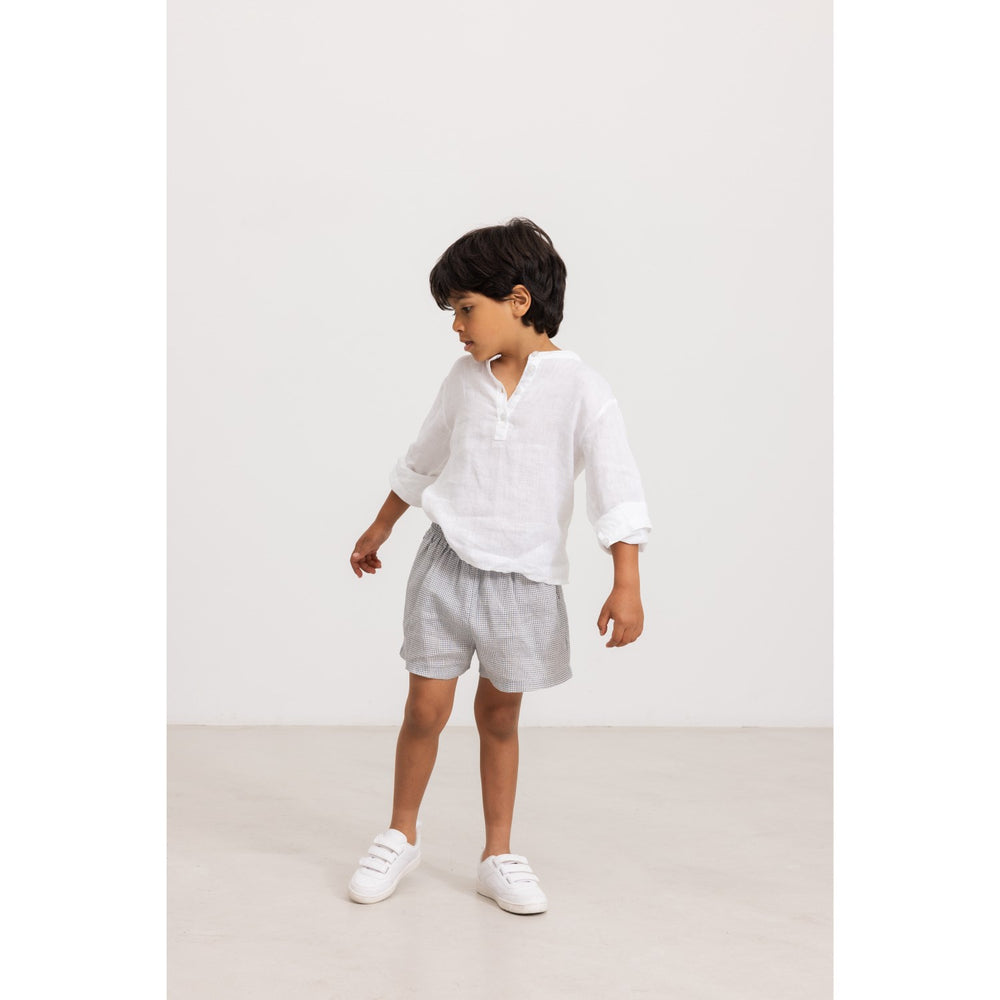 Summer will be a breeze with these MarMar Linen Mini Check Pina Shorts! They are made of 100% natural linen, which not only ensures a cooling feeling on hot days, but also becomes softer and more comfortable after each wash. With their loose fit and elastic waist, they provide good freedom of movement, perfect for active children. A simple back pocket adds convenient storage, while the slightly crinkled look adds to a casual style. The shorts are certified organic and free of harmful chemicals, so you can feel confident in your choice.