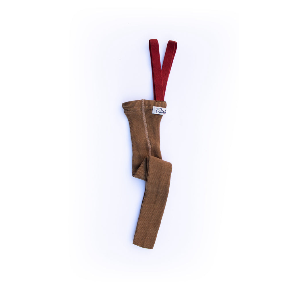 Introducing Silly Silas Acorn Brown Footless Tights with Maple Leaf pattern, the Christmas edition that's perfect for festive fun! Made from soft, breathable cotton, these leggings feature convenient braces for a snug fit while offering freedom of movement. Their delightful acorn brown hue paired with charming maple leaf details brings a touch of holiday spirit to your child's wardrobe. Ideal for celebratory events or cozy days in, they ensure your little one stays comfortable and stylish throughout the season. Easy to care for, these tights promise durability and long-lasting wear, celebrating the joy and excitement of Christmas with every wear! Materials: 100% Organic Cotton Washing instructions: Remember to follow washing and user instructions Certifications: OEKO-TEX® Standard 100 at the Class 1, GOTS Organic