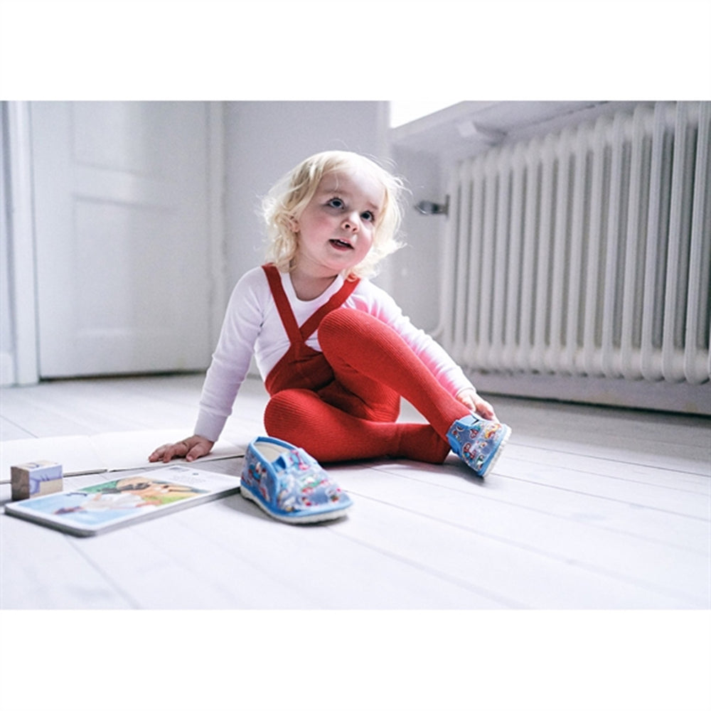 The prettiest tights for the kids. Here in a nice shade of red. The tights have the cutest suspenders. They are really just charming and the kids will look so nice with them.