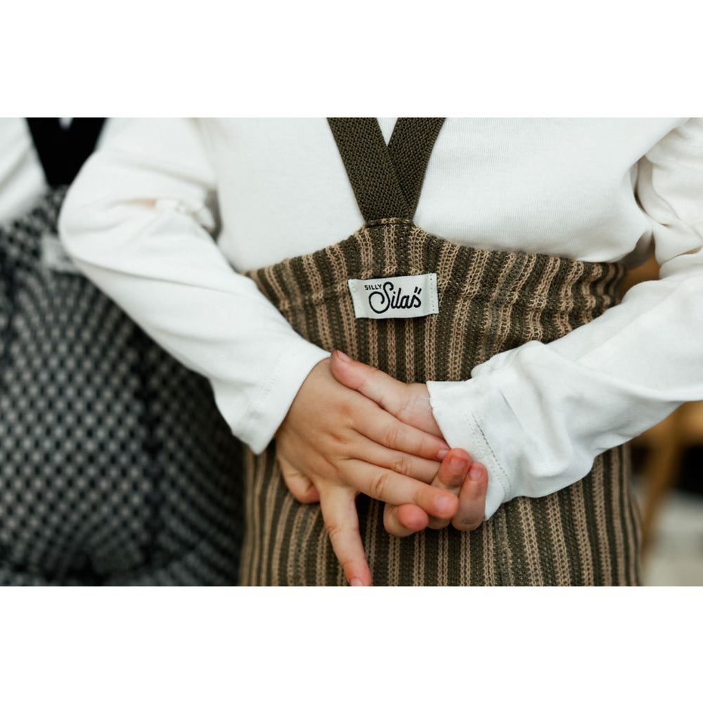 Dress your little one in the charm and comfort of the Silly Silas Seaweed Brown X Peanut Striped Special Footed Tights. Crafted from soft cotton, these special edition tights feature stylish braces, delightful seaweed brown and peanut stripes, ensuring both snug fit and ease of movement. Perfect for playful days, they're easy to care for and ideal for your child's everyday adventures. Materials: 100% Organic Cotton Certifications: OEKO-TEX® Standard 100 at the Class 1, GOTS Organic