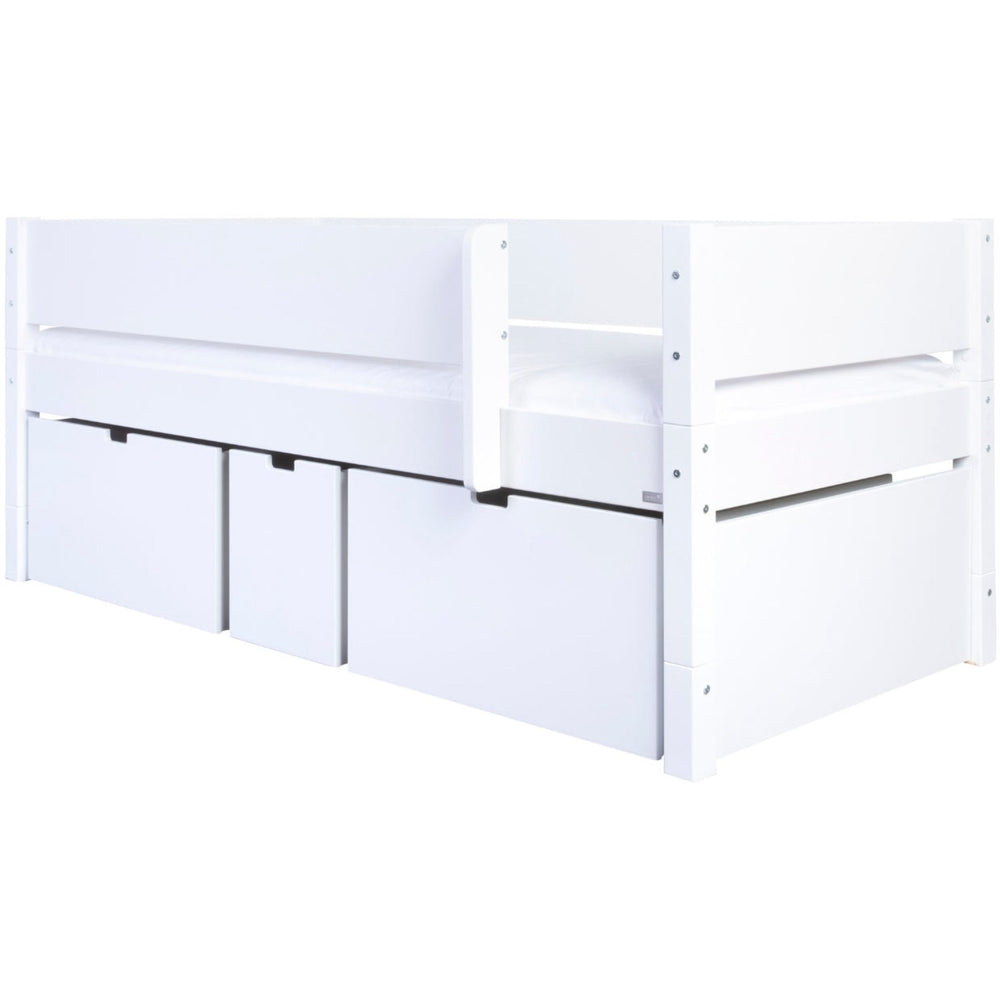 Discover the charm and practicality of the Manis-h Snow White Nanna Børneseng, perfectly crafted for your child's room. This single bed combines a serene design with optimal functionality, featuring spacious drawers below for convenient storage of toys, clothes, and bedding. The calm aesthetics promote a harmonious environment, ensuring comfort and stimulating your child’s imagination. Ideal for maintaining an organized and inviting space. Materials: MDF & Beech wood Measurements: 90 x 200