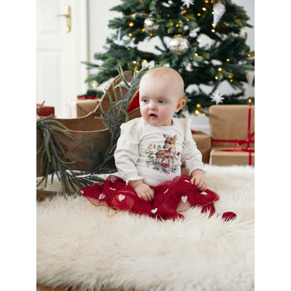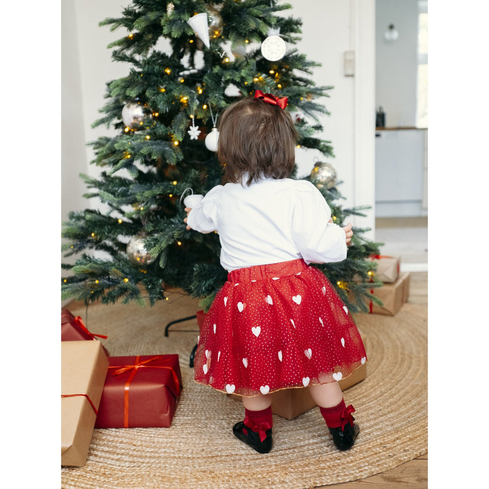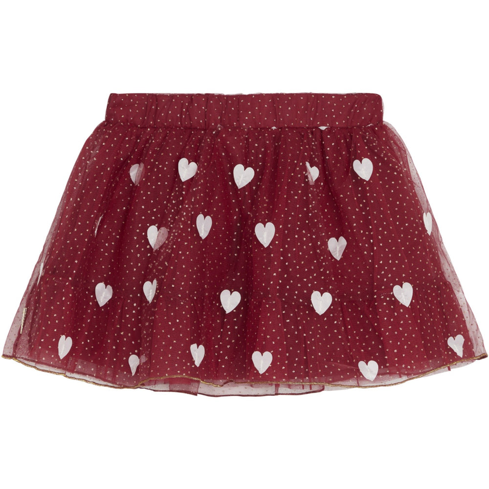 Introducing the charming Hust & Claire Teaberry Ninna Skirt, perfect for adding a sparkle to your little one's wardrobe. This delightful tulle skirt features an elasticated waist for easy wear and a tailored fit, ensuring comfort throughout the day. Adorned with sewn-on hearts and eye-catching glitter details, it brings a touch of magic to any outfit.