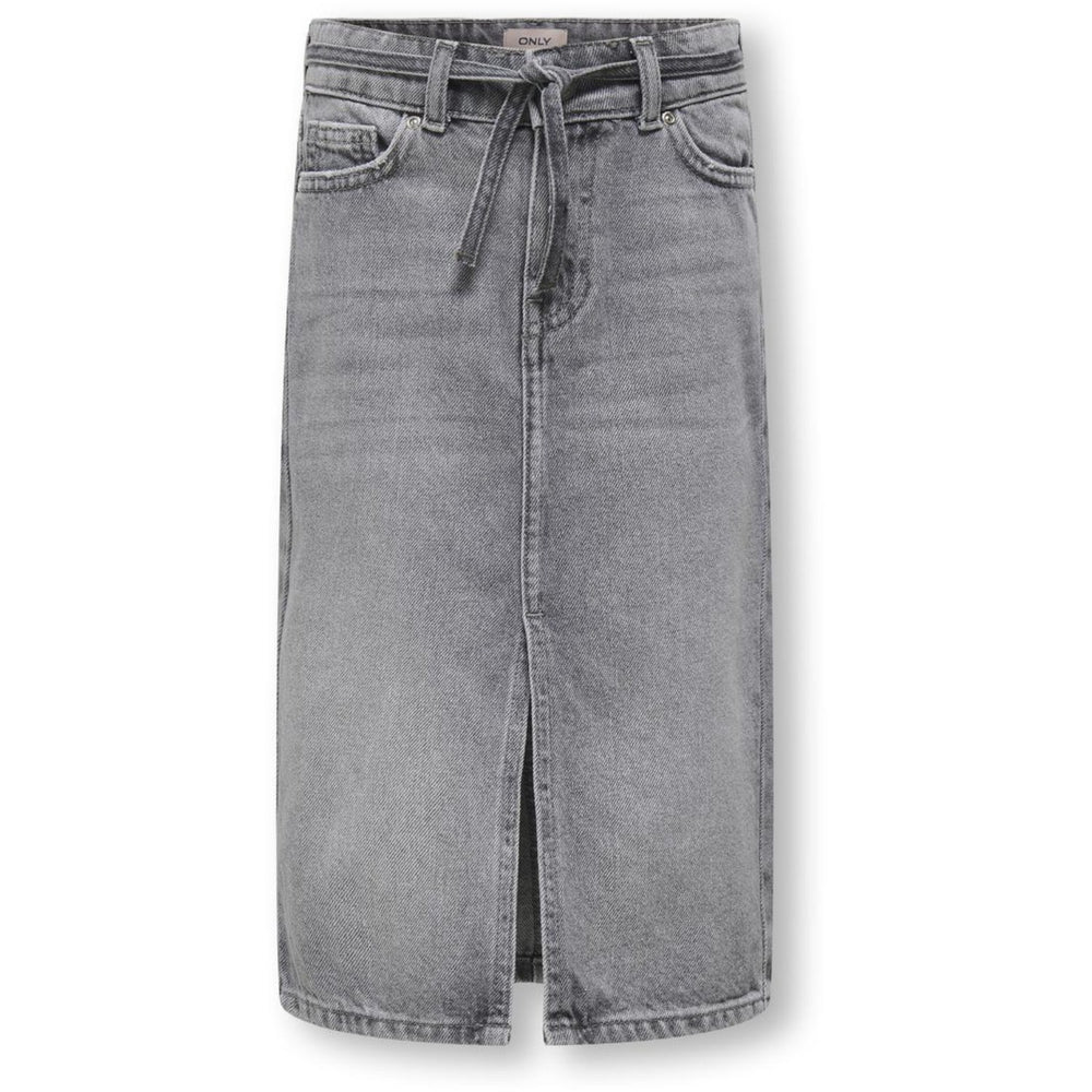 kids ONLY Medium Grey Denim Gianna Belted Midi Skirt Dot Denim