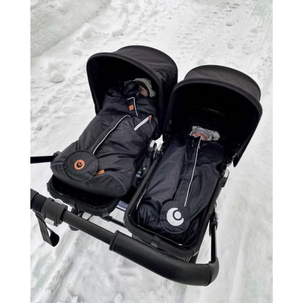 Adjustable from three different points, the hood of the Norse Footmuff can be tightly secured to protect against harsh weather elements like wind, snow, or rain. Designed for versatility, it fits seamlessly into sledges, is ideal for tent excursions, and compatible with bicycle carts, thanks to its adaptable 5-point harness system. The innovative wool backing regulates temperature effectively, warming up during chilly days and cooling down when it's milder.