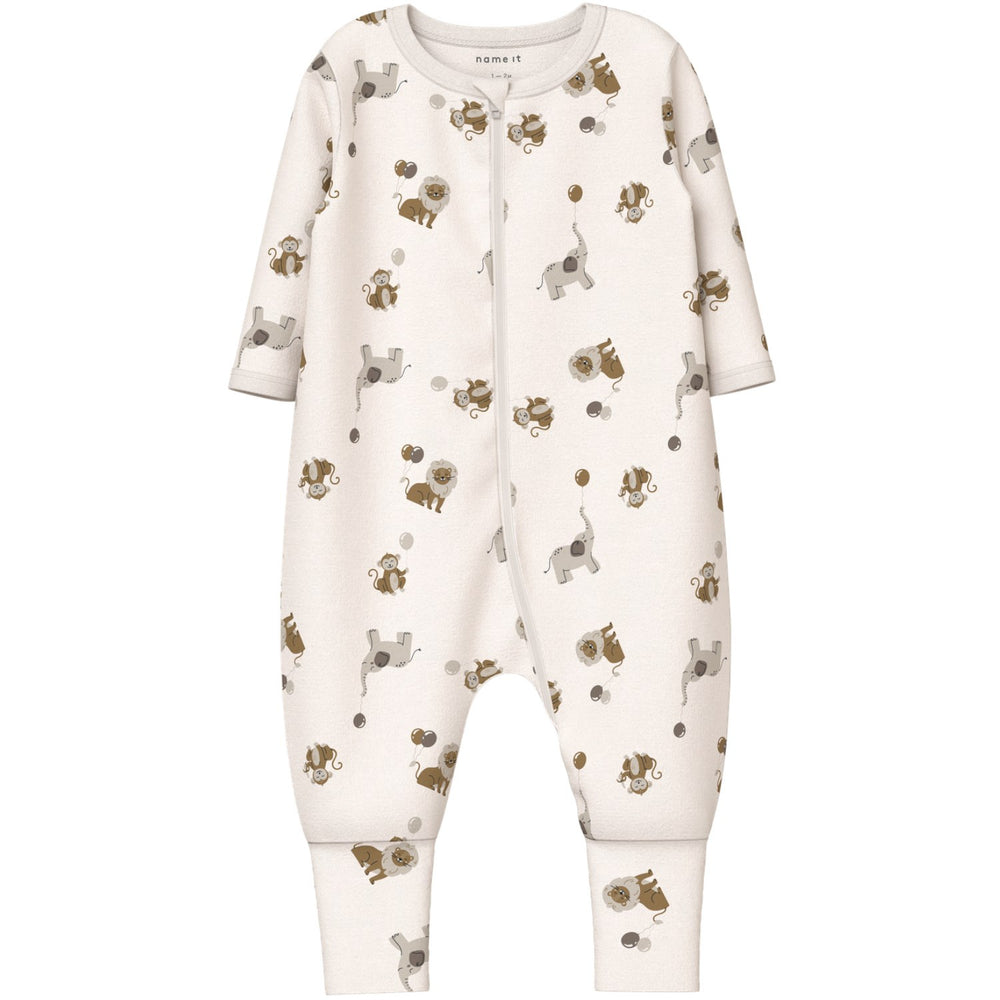 Introduce cozy comfort to your child's nighttime routine with the Name It Jet Stream Nbnnightsuit 2P Zip Ff Animal Noos. Crafted from interlock fabric, this sleepsuit offers a double-layered, smooth finish with excellent stretchability for unrivaled comfort. Featuring long sleeves and a convenient zip fastening, these night suits ensure easy dressing and a snug fit. The adorable animal print spans the entire surface, making bedtime an exciting affair. Available in a practical 2-pack with fold-up hems for adjustability, these suits also emphasize safety with a fire hazard warning. Perfect for ensuring a blissful night's sleep, these garments blend style, comfort, and practicality effortlessly.