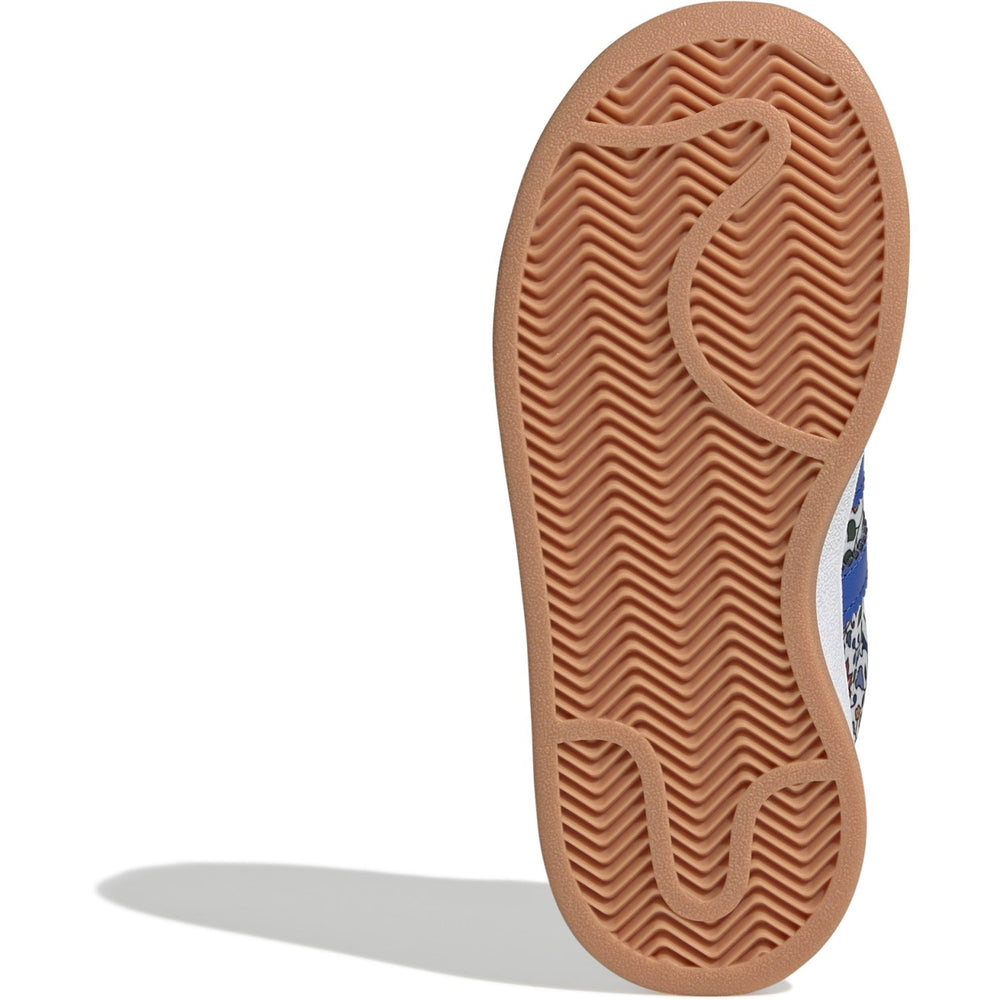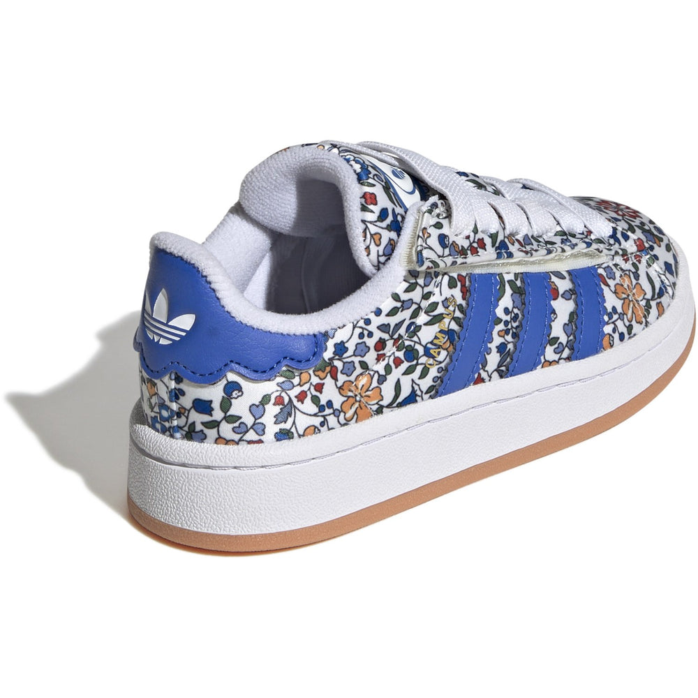 Discover the charming adidas Originals Kids' Campus Sneakers, featuring a delightful floral print inspired by Liberty London. These sneakers boast a smooth, durable upper and a snug, comfortable fit ideal for growing feet. The vibrant supplier color, blue, and off-white pattern add a playful touch to any outfit. With a lightweight design and a rubber outsole ensuring excellent traction, these sneakers are perfect for all sorts of child's play. Easy to care for, they keep little adventurers comfortable and stylish throughout their daily explorations. Ideal for both casual wear and active occasions, they are a testament to adidas' rich heritage in stylish yet functional children's footwear. Fit: Regular Materials: Upper: Synthetic, Textile, Lining: Textile, Sole: Rubber Extra: Campus-specific Y2K branding on tongue, Trefoil branding on heel tab, Campus wording on lateral side, adidas branding on sockliner, serrated three stripes. Liberty London and Adidas Trefoil branding on the sockliner.