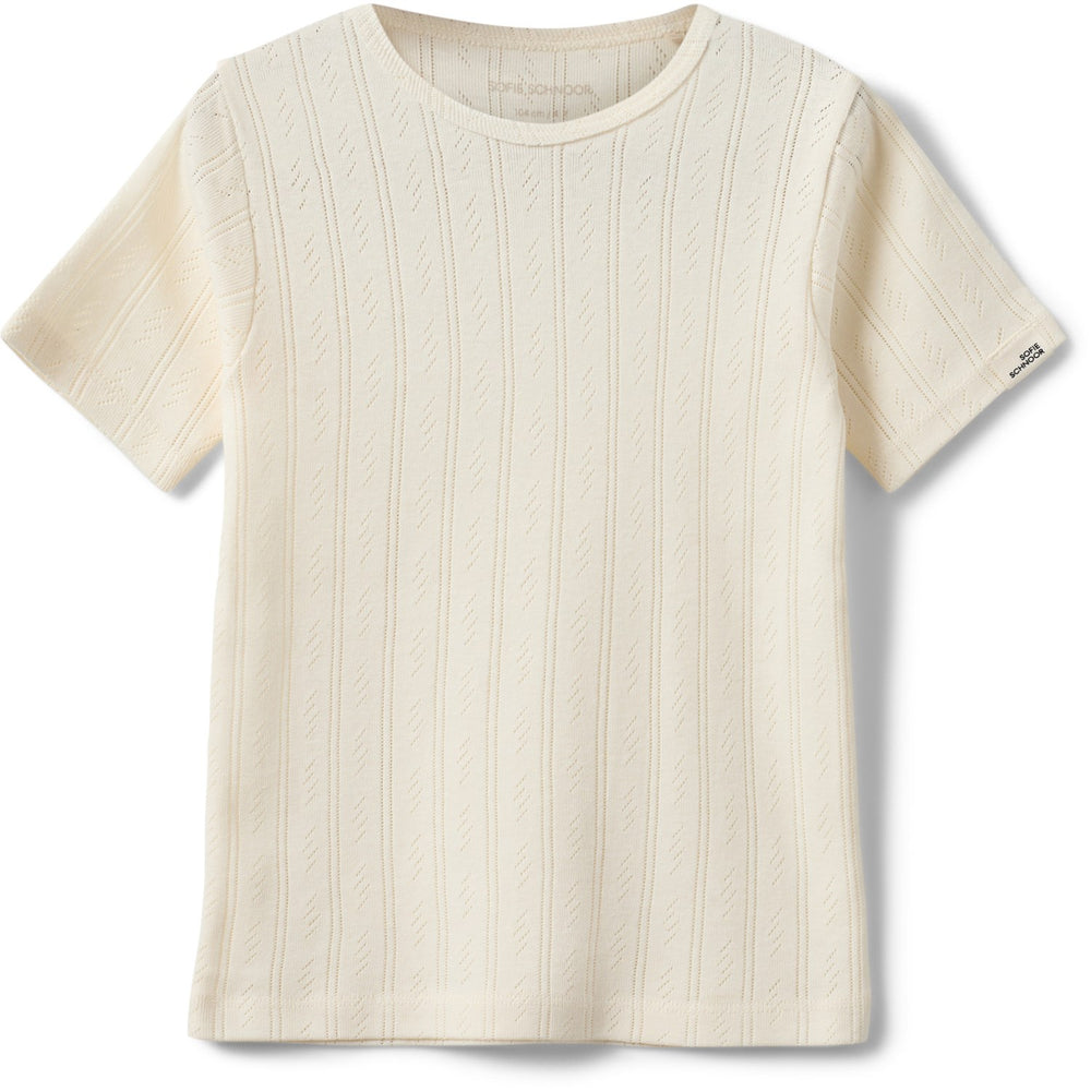 Let your little star shine in this charming Sofie Schnoor off white Pipersk T-shirt. This cute T-shirt is adorned with a quirky pointelle print, which adds a touch of elegance to any occasion. Perfect for hot summer days or as a cosy layer under a cardigan when it's cooler. Made from soft, breathable material to ensure your little one's maximum comfort. Ready for play, adventure and everything in between!