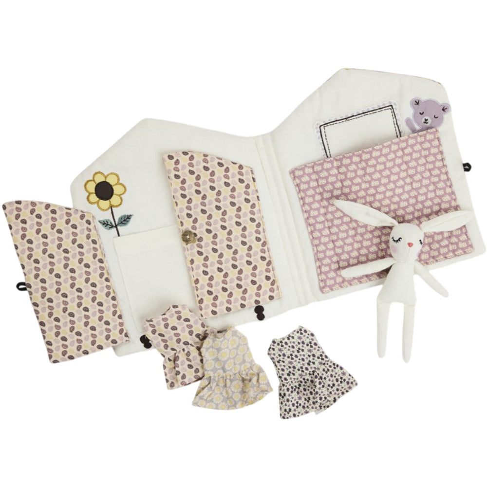 Discover the enchanting Smallstuff Bedroom Tiny House Book, a soft activity book featuring the cutest rabbit character. This delightful book includes three gorgeous dresses in a tiny closet and is crafted from child-safe, 100% cotton with PET filling made from recycled plastic bottles, meeting the stringent STANDARD 100 by OEKO-TEX® for safety. Measuring 20x24 cm, it is perfect for children aged 3 and up. Easily portable, it becomes a wonderful companion for car rides, restaurant outings, or serene moments in the room. Plus, it's simple to keep fresh with a gentle wash at 30 degrees. Engage young minds with this safe, educational, and interactive choice.