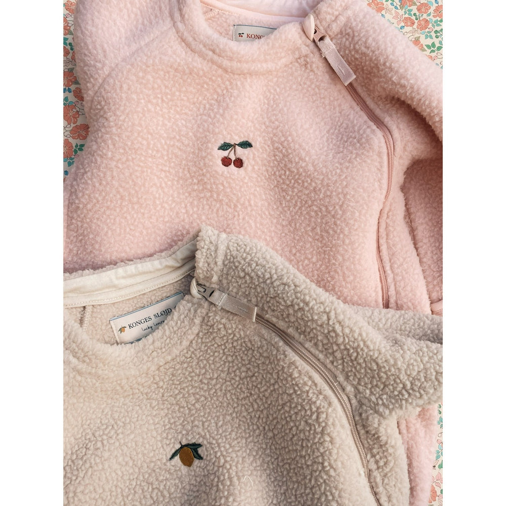 Dress your little one in the Konges Sløjd Rose Smoke Safa Onesie, expertly crafted from cozy pile material. This charming onesie boasts stylish, foldable cuffs at the hands and feet, ensuring your baby stays warm. The delicate rose smoke color adds a touch of elegance, making it a perfect choice for both comfort and style. Ideal for cooler days, this functional and fashionable piece simplifies dressing and keeps your baby snug during stroller rides. Easy to care for, it's a must-have for your child's wardrobe.