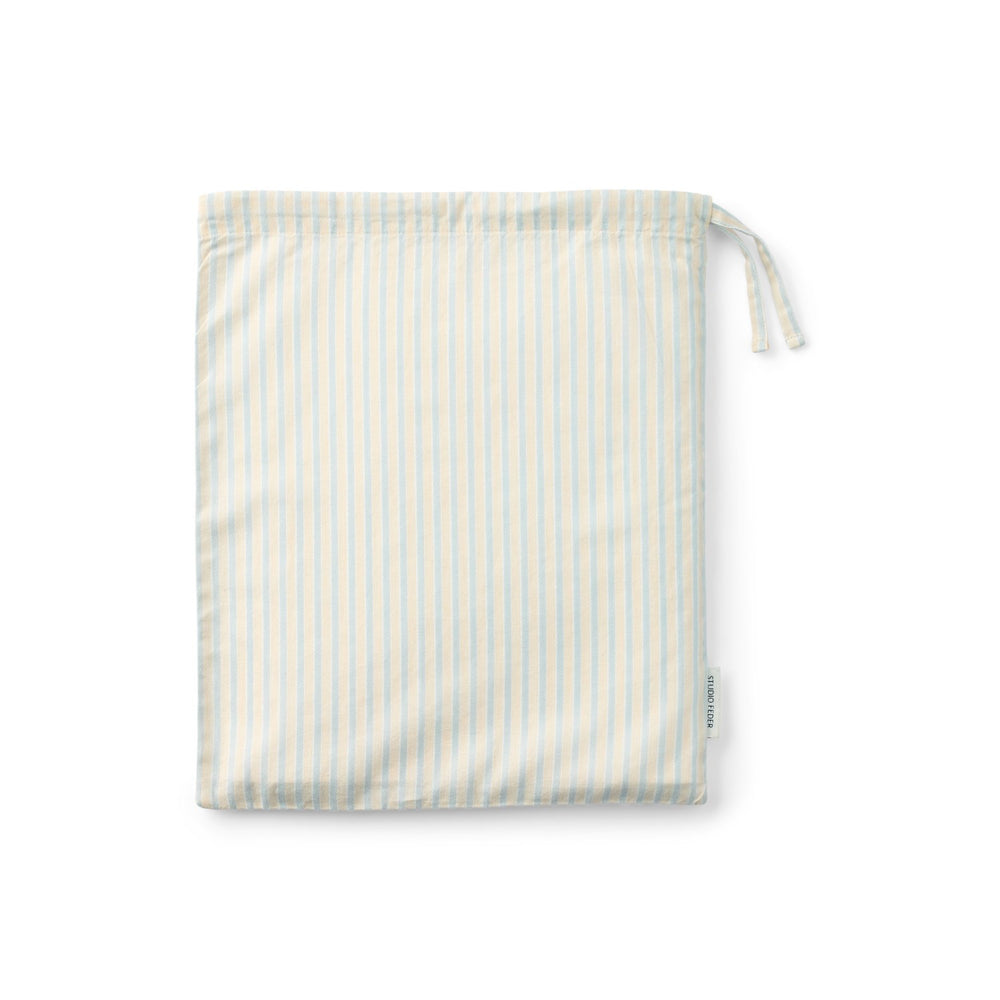 Discover the luxurious softness of the Studio Feder Boudoir Sky Bedding Satine, expertly crafted for your child's utmost comfort. This organic cotton satin bedding set elevates sleep comfort while ensuring safety and quality with its GOTS certification. The gentle, understated look complements any room's decor, providing an inviting hand feel that promises restful sleep. Both the pillowcase and duvet cover feature practical closures; an envelope closure for the pillowcase and stylish button closures for the duvet. Each set arrives in a beautiful fabric bag with tie strings, perfect for storage and organization. French seams add durability and a touch of elegance, perfect for creating a cozy and stimulating sleep environment for your child. Settle your little one into the soothing embrace of Studio Feder's premium bedding tonight—designed with both elegance and wellness in mind.