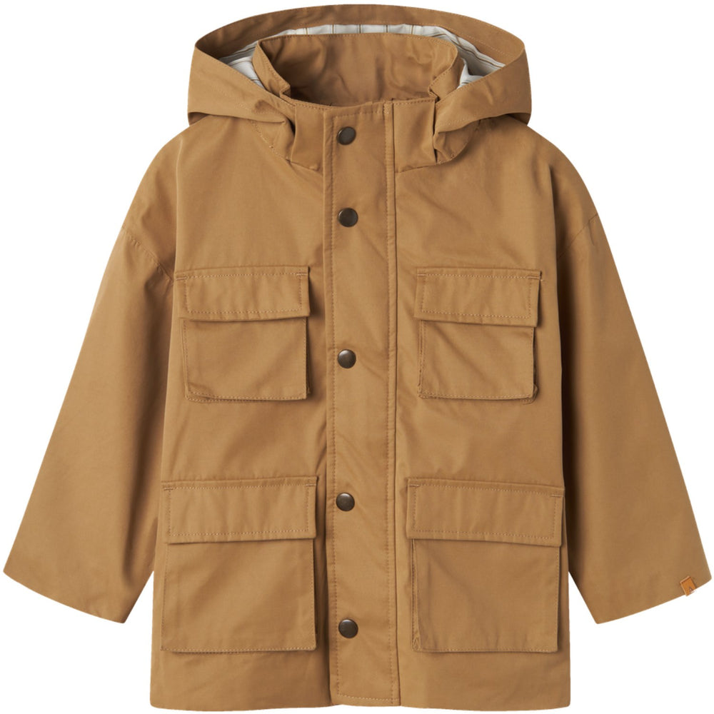 Introducing the Lil'Atelier Petrified Oak Godo Long Loose Jacket — a staple for your child's wardrobe, crafted from woven fabric with a classic criss-cross pattern for a stylish yet timeless look. This well-designed jacket features advanced functionality, including a breathability rating of 3,000g/m2/24h and a special membrane offering windproof and waterproof protection.