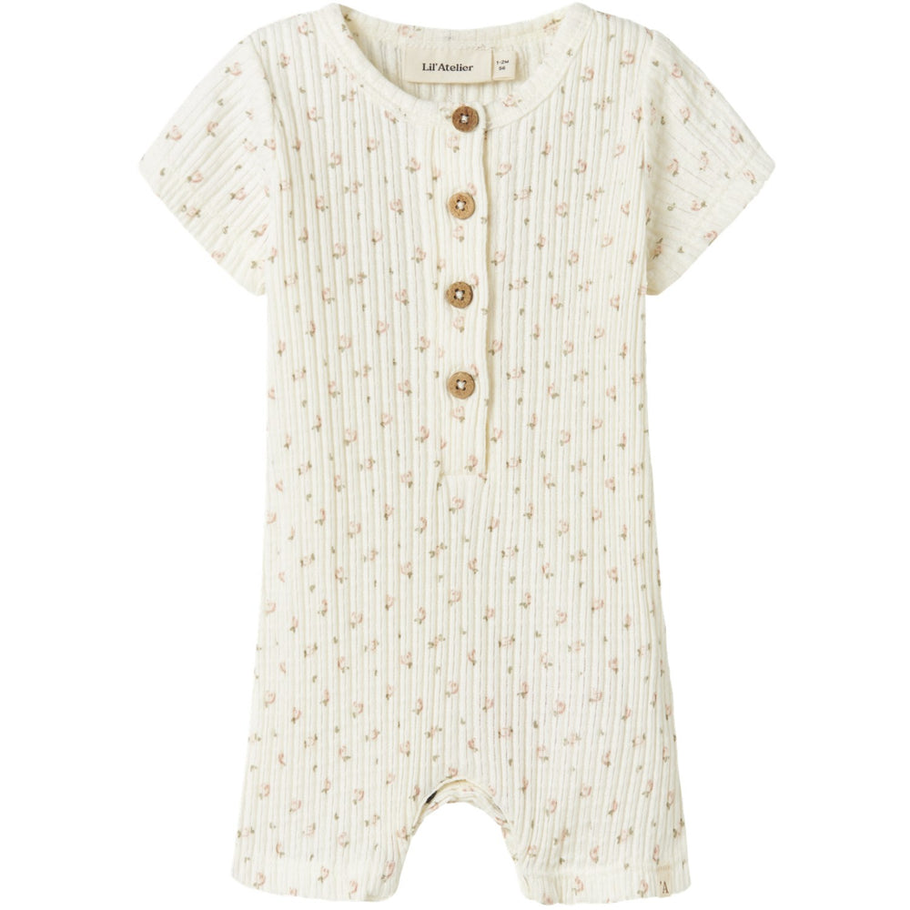 Dress your little one in the Lil'Atelier Coconut Milk Hulla Loose Summer Suit, crafted from soft and stretchy jersey material that guarantees comfort and freedom of movement. This lightweight bodysuit features charming prints across its entirety, complete with practical button and press stud fastenings for easy dressing. Designed not only for style but also for durability, it ensures a cozy yet trendy look perfect for everyday wear.