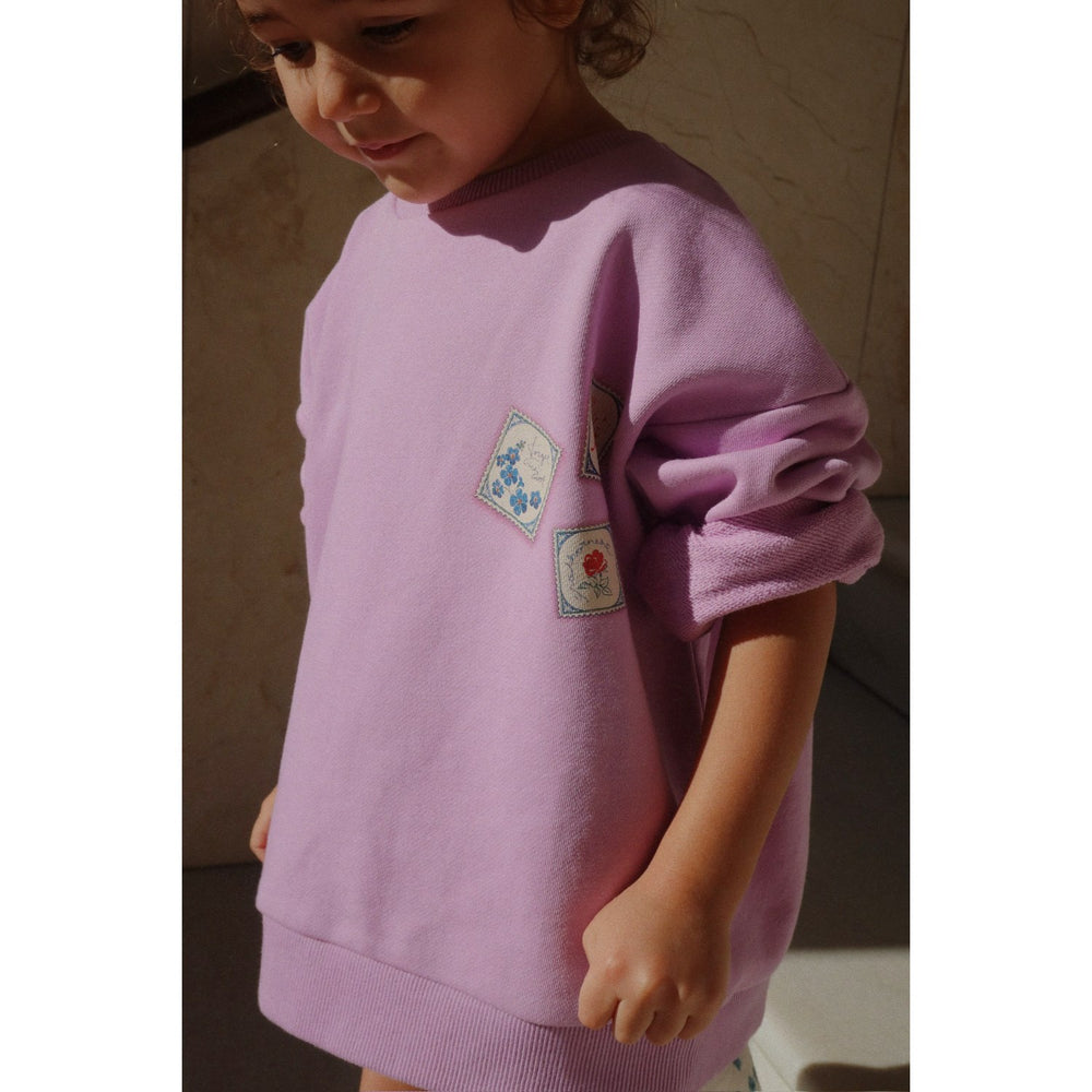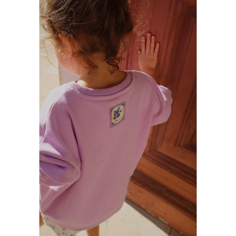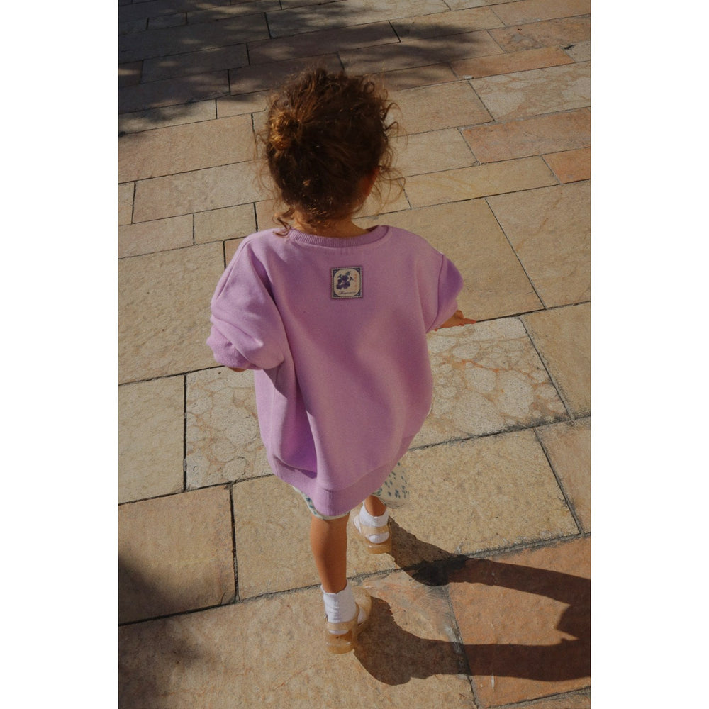 Discover the charming Konges Sløjd Lupine RHW X KS Lettre Sweat Ocs for your little one. Crafted from soft organic cotton, this sweatshirt boasts a cozy, relaxed fit with trendy dropped shoulders and a slightly boxy shape. Its easy wearability and gentle fabric care make it a perfect addition to any child's wardrobe, ensuring both style and comfort in their daily adventures.