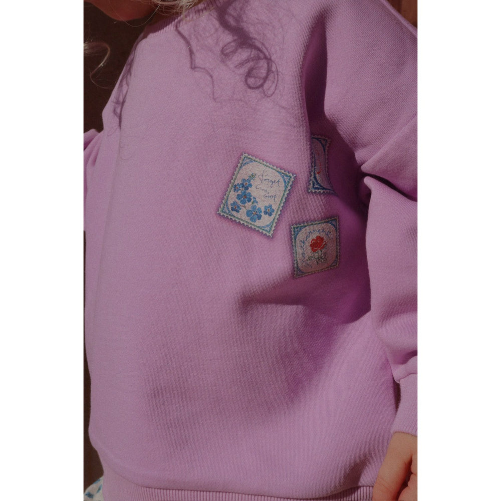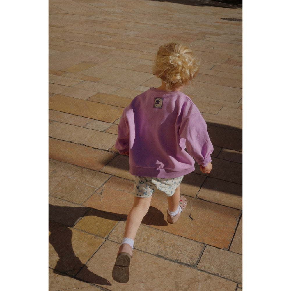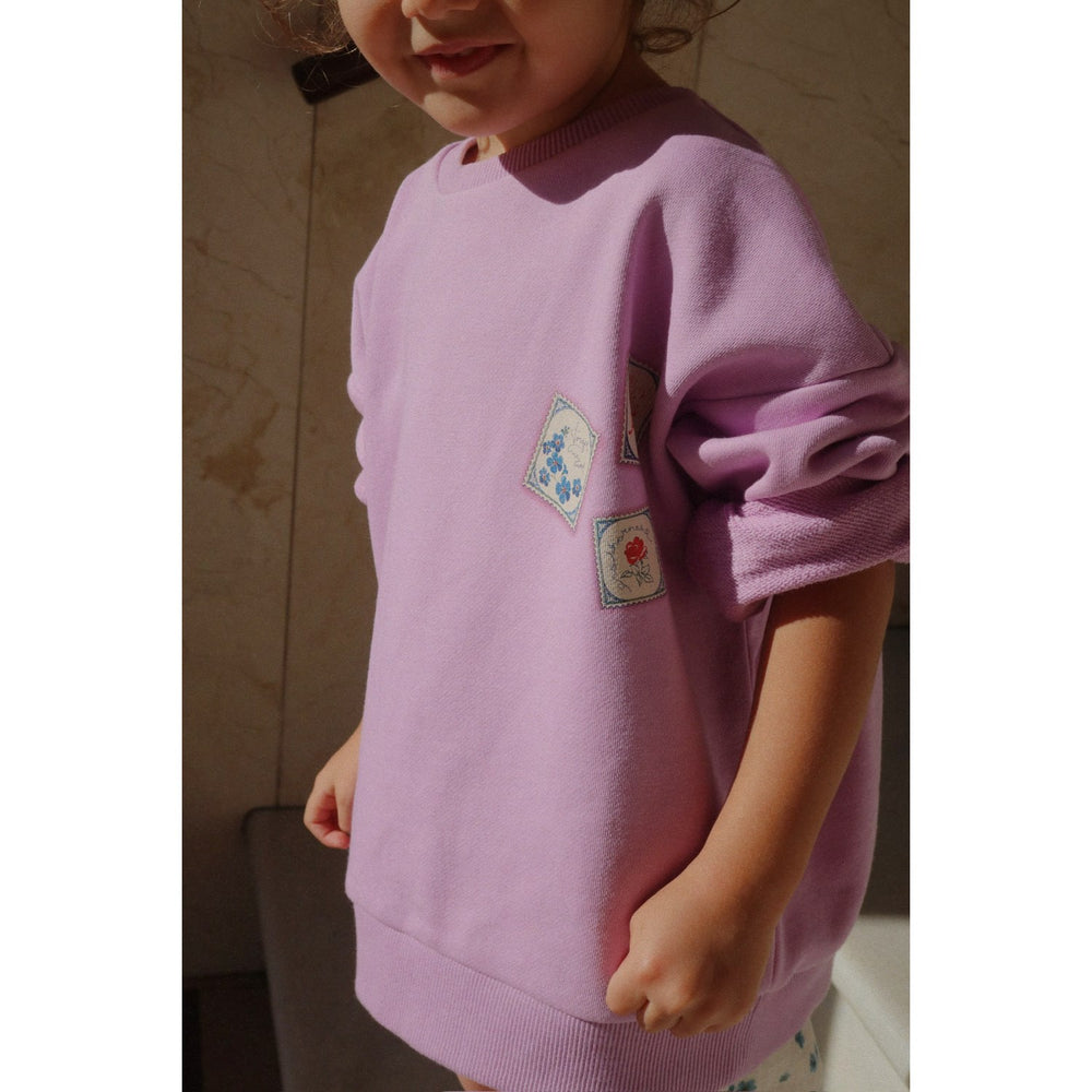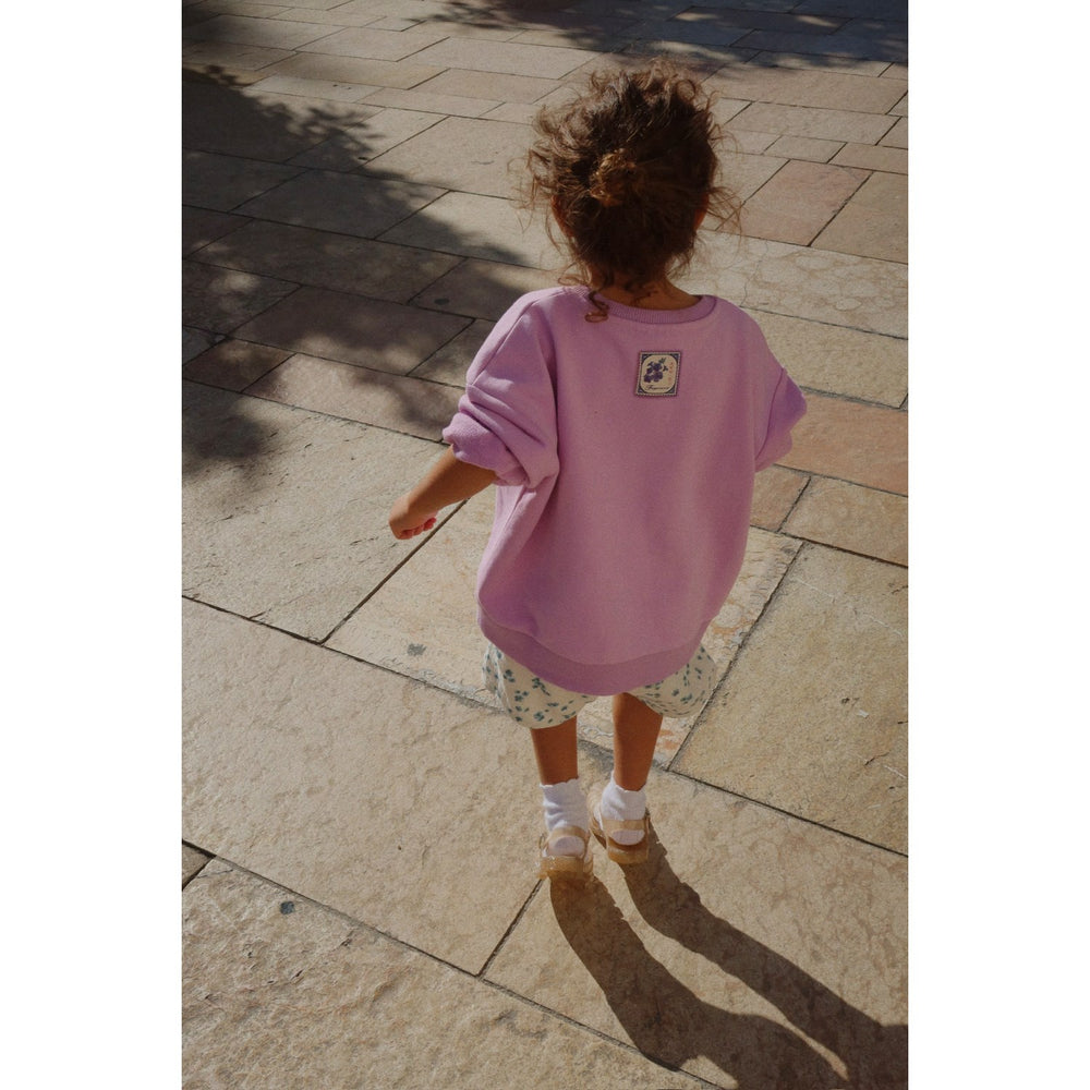 Discover the charming Konges Sløjd Lupine RHW X KS Lettre Sweat Ocs for your little one. Crafted from soft organic cotton, this sweatshirt boasts a cozy, relaxed fit with trendy dropped shoulders and a slightly boxy shape. Its easy wearability and gentle fabric care make it a perfect addition to any child's wardrobe, ensuring both style and comfort in their daily adventures.