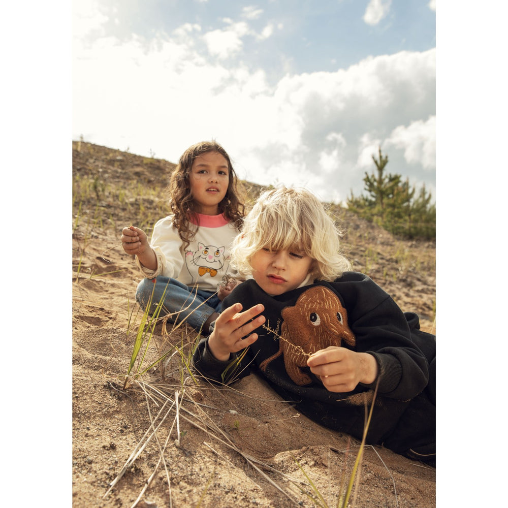 Dress your little one in comfort and style with the Mini Rodini Black Mammoth Chenille Sweatshirt. Crafted from soft chenille fabric, this sweatshirt features a unique mammoth pattern that adds a fun twist to everyday wear. It comes in a versatile black shade, ensuring it matches easily with other items in your child's wardrobe. Ideal for various occasions, this cozy sweater offers both warmth and breathability, securing a perfect fit with its considerate sizing. Plus, easy care instructions make it a practical choice for busy parents.