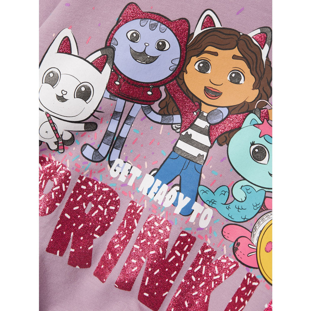 Introduce the delightful Name It Lavender Mist Nera Gabby Regular Sweatshirt to your child's collection and watch them revel in trendy comfort. Crafted from brushed sweat fabric, this sweater is exceptionally soft inside, ensuring utmost comfort. The stylish lavender mist color adorned with a whimsical Gabby's Dollhouse rubber print appeals to young imaginations, featuring fun glitter details and cute ruffles for added charm.