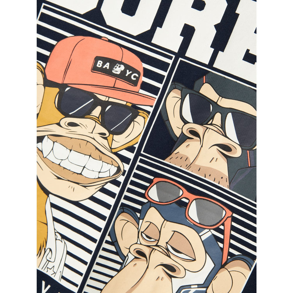 Introduce your little one to the stylish world of comfort with the Name It Navy Blazer Maddux Bored Of Directors Regular Sweatshirt. Crafted from unbrushed sweat fabric, this sweatshirt features a smooth exterior and soft loops inside, ensuring your child stays comfortable all day. Showcasing a playful and trendy rubber print from the iconic Bored Ape Yacht Club, this piece combines fashion with pop culture. The sweatshirt is designed with a hoodie neck, long sleeves, and ribbed cuffs for a snug fit. Available in a standard fit, it is perfect for children who are always on the move. Easy to care for, this garment promises to maintain its look and feel, wash after wash. Ideal for everyday wear, it offers a unique blend of style, comfort, and durability that will make your child stand out while they play and explore.