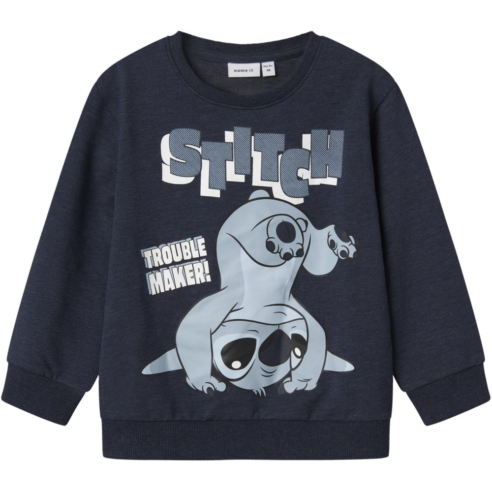 Dress your little one in the Name It Navy Blazer Nmmjasp Stitch Nreg Sweat Unb Wdi, a perfect blend of style and comfort. Crafted from unbrushed sweat fabric, this sweatshirt features a smooth exterior and soft loops inside, ensuring it feels as good as it looks. Adorned with a charming rubber and foam print of Disney’s Stitch, it not only looks adorable with its three-dimensional puff effect but it also brings warmth and a message of love, family, and acceptance.