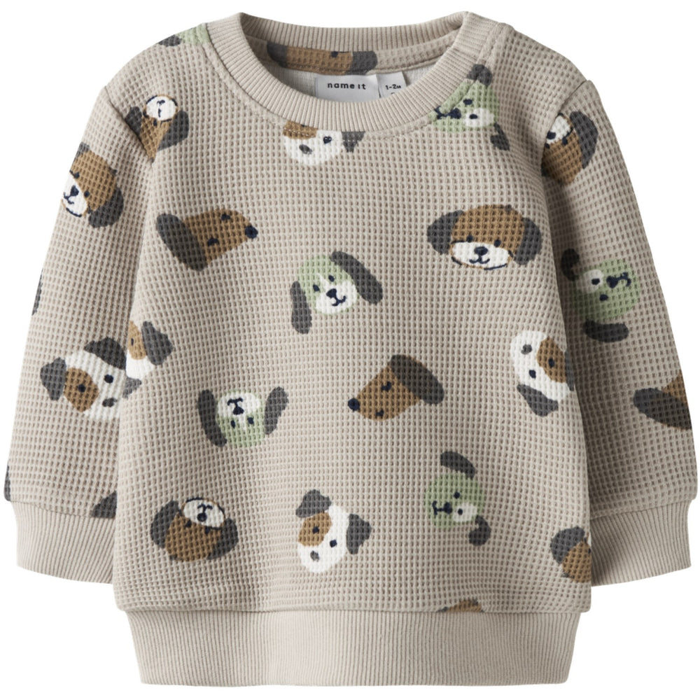 Introducing the Name It Pumice Stone Nbmtimm Ls O-Neck Sweatshirt, perfect for adding a touch of trendiness to your child’s everyday attire. Crafted from soft, durable material, this sweatshirt features a classic O-neck and long sleeves, ensuring a comfortable regular fit. Adorned with a captivating print that covers the entire surface, it offers both style and warmth. Available in a variety of sizes to ensure a great fit for every child. Note: Keep away from fire. Ideal for layering or as a stand-alone piece, this sweatshirt is sure to become a go-to in your child's wardrobe!