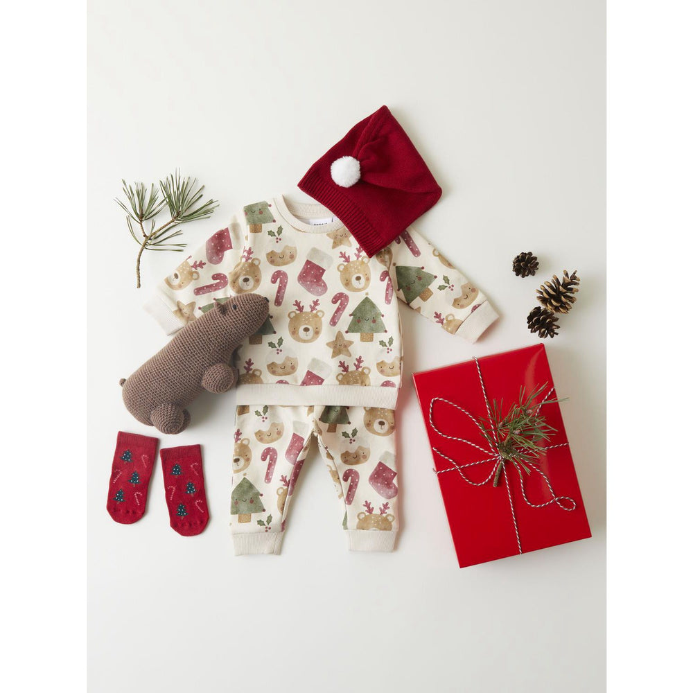 Introducing the delightful 'Name It Summer Sand Rahus Sweatshirt,' perfect for adding a sprinkle of festive cheer to your child's wardrobe. Crafted from brushed sweat fabric, this sweatshirt ensures a soft, comforting touch against the skin, ideal for the sensitive skin of children. The round neck and long sleeves offer a classic look, while the press stud fastening on the shoulder allows for easy dressing.