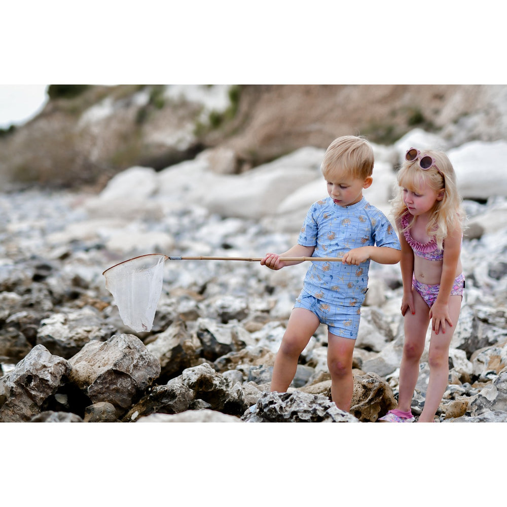 Dive into summer safely with this eye-catching Mikk-Line Faded Denim AOP UV Shirt, perfectly designed for boys who love style and sun protection. Crafted from recycled polyester, this swim shirt boasts not just one, but two vibrant patterns that guarantee a standout look. With its snug fit and UV 50 protection, it keeps young swimmers safe and comfortable under the sun. Certified by OEKO-TEX® Standard 100, this shirt ensures safety and environmental care in its creation. Remember to rinse in clean water after each use to maintain its delightful appearance and functionality season after season. Whether it's a pool day or a sea adventure, this swim shirt is an essential!