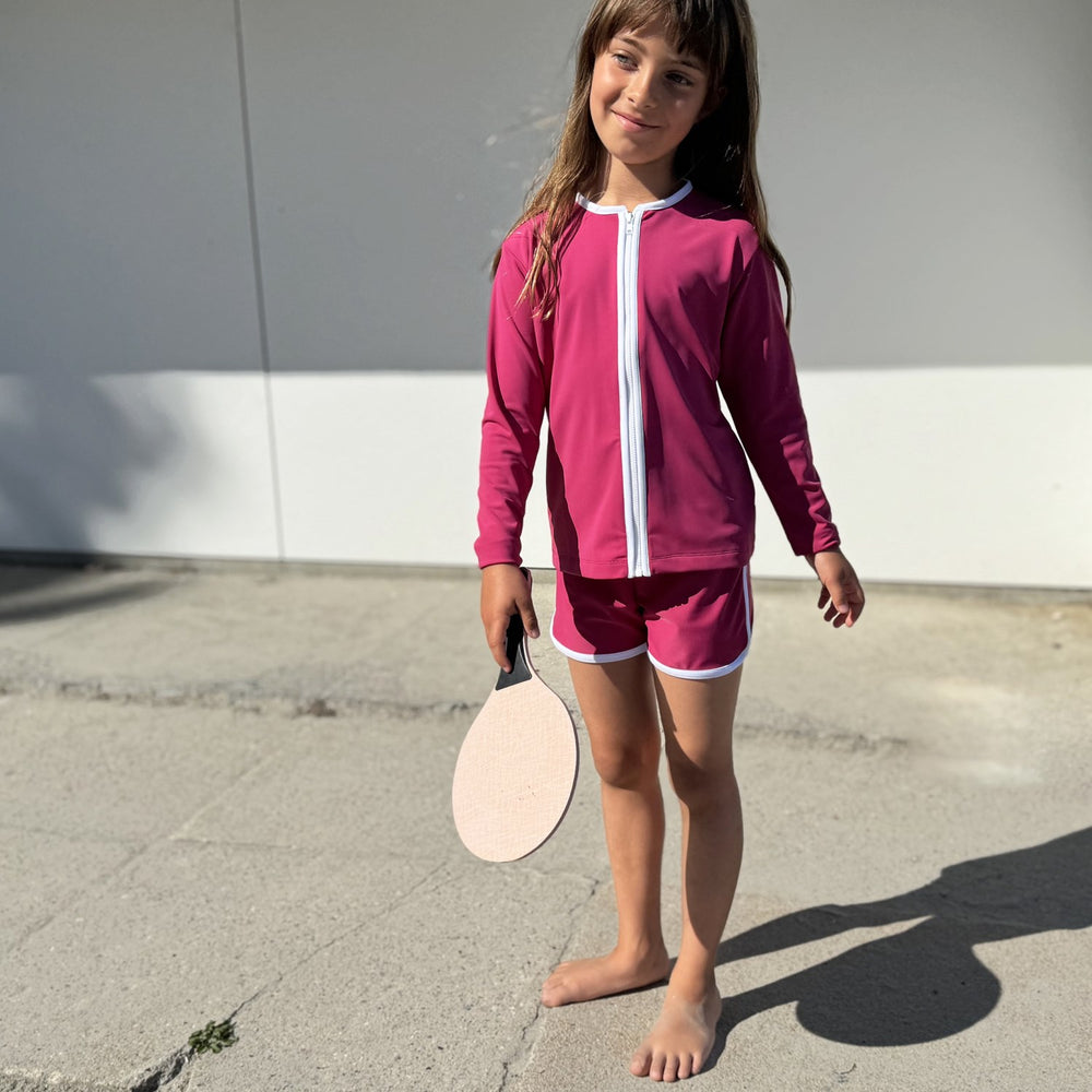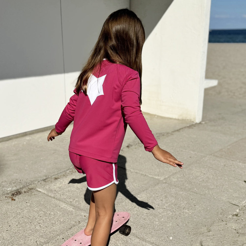 Introduce your little one to the beach in style with the Petit Crabe Mulberry Etoile Zipper UV-Swim Shirt. Crafted from 75% recycled materials, this long-sleeved swim shirt features a charming star applique and a reliable YKK zipper for easy dressing. Not just stylish, it offers excellent UV protection with its Oeko-Tex certified fabric that's also breathable, quick-drying, and comfortable. Perfect for layering over a swimsuit or bikini, it works equally well with both long and short shorts, providing versatility for sunny or slightly chilly days at the beach.