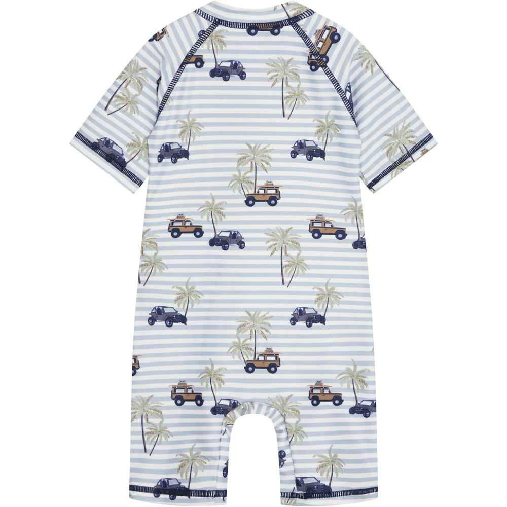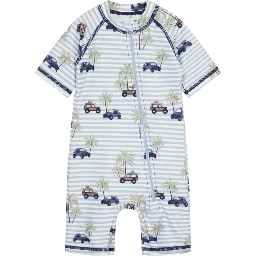 Dive into fun with the Hust & Claire White Makki Bathing Suit, perfect for your little adventurer. Crafted from 83% recycled polyester, this short-sleeved swimsuit stretches for comfort and features a unique asymmetrical zip for easy wear. Choose from vibrant safari or dinosaur prints, each with UV50+/UPF50 protection to guard against the sun. Oeko-Tex 100® certified, it ensures safety and style in every splash.