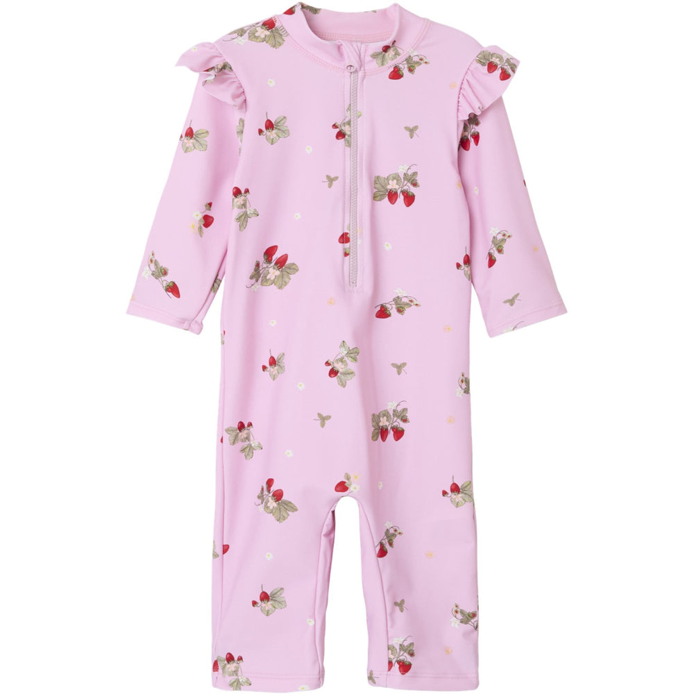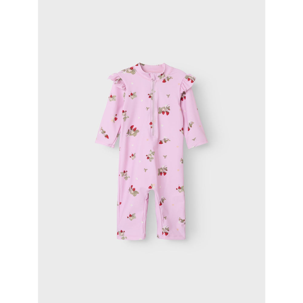 Dive into style and safety with the Name It Fragrant Lilac Zila 3/4 UV Swimsuit! Perfect for both pool days and beach adventures, this swimsuit ensures your little one remains both comfortable and trendy. Made from a premium material that offers UPF 50+ protection, it guards against both UVA and UVB rays, meeting stringent EU standards. The charming frill details and vibrant, allover print add a touch of whimsy, while the zip fastening ensures a snug and secure fit. Durable and easy to care for, it's an ideal choice for endless summer fun!