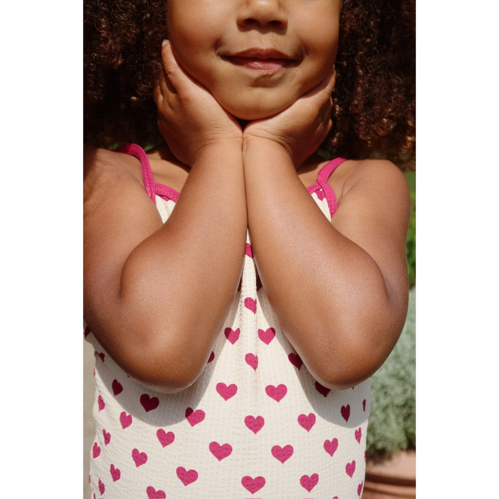 Introducing the Konges Sløjd Coeur Sangria Bowie Swimsuit, the ideal blend of style and comfort for your little one's water adventures. Crafted from cozy seersucker fabric, this swimsuit showcases a vibrant pattern with an eye-catching, oversized bow at the back, perfect for stylish splashes. Its durable material ensures long-lasting wear and easy care, making it as functional as it is charming. Perfect for beach days or poolside play, this swimsuit promises both fun and functionality.
