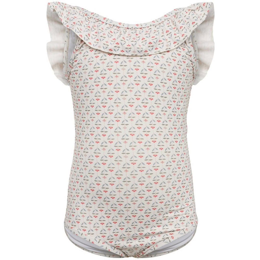 A lovely swimsuit in antique white flower print from Sofie Schnoor - perfect for play days at the beach or pool! With ruffle details and the iconic "Sofie Schnoor" logo on the back, this swimsuit is a favorite with little ones. Made from 82% recycled polyester and 18% spandex with UPF 50 protection for sunflower play. Remember to follow the washing and use instructions to preserve the beauty of the suit. Your little one will love swimming around in this suit!