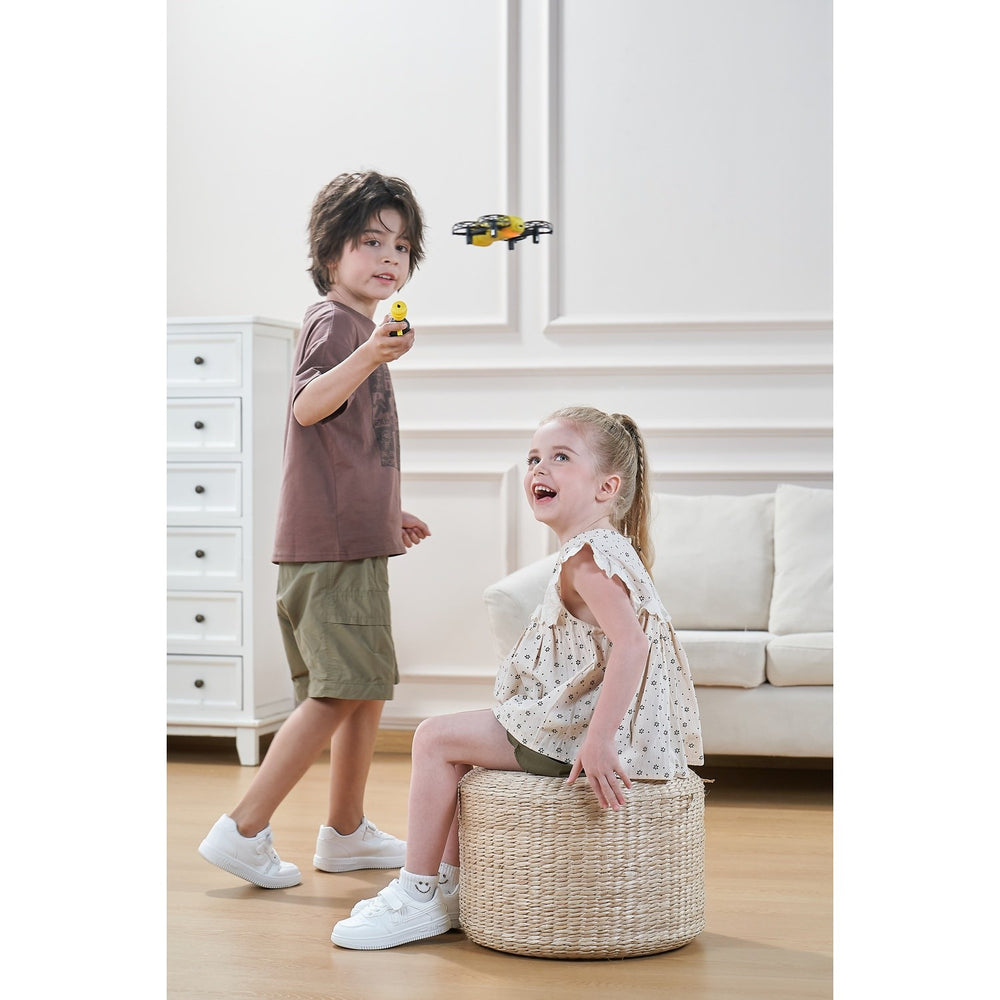 Discover the joy of interactive play with the Syma Revolt Follow Me Bee RC, a delightful flying toy perfect for preschoolers. Designed for simple operation, just squeeze the remote control to launch and release to land. This clever bee locks onto your child, maintaining a safe distance of about one meter, and follows them at the press of a button, fostering engagement and excitement. Enhance the fun with a double-tap that prompts the bee to perform an impressive flip in the air!